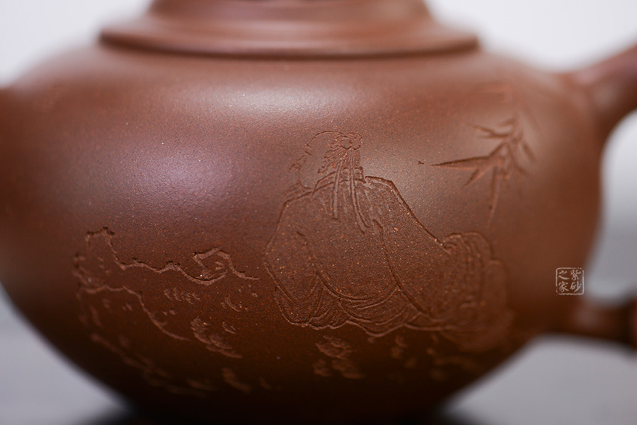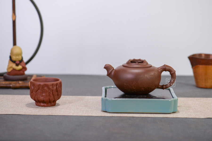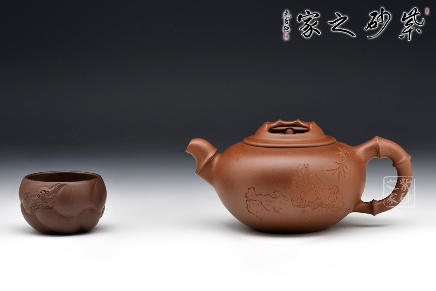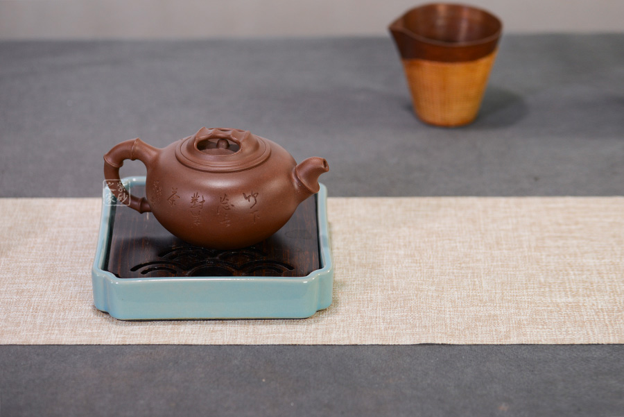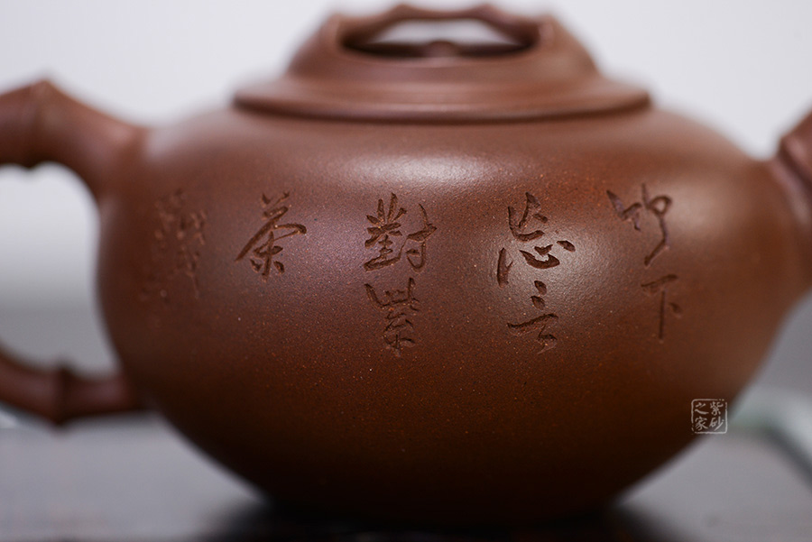 B面: 裝飾: 詩詞 裝飾者: 裝飾內(nèi)容: “竹下忘言對(duì)紫茶”