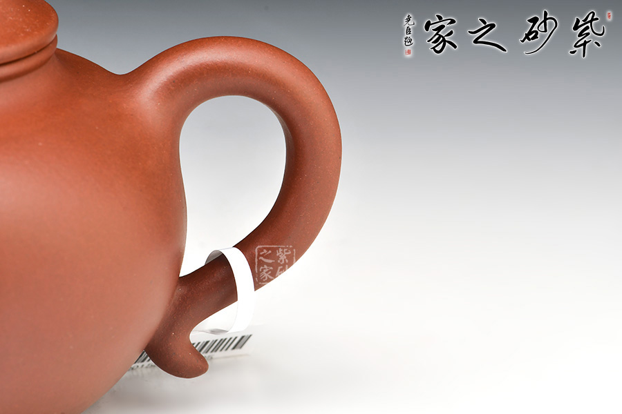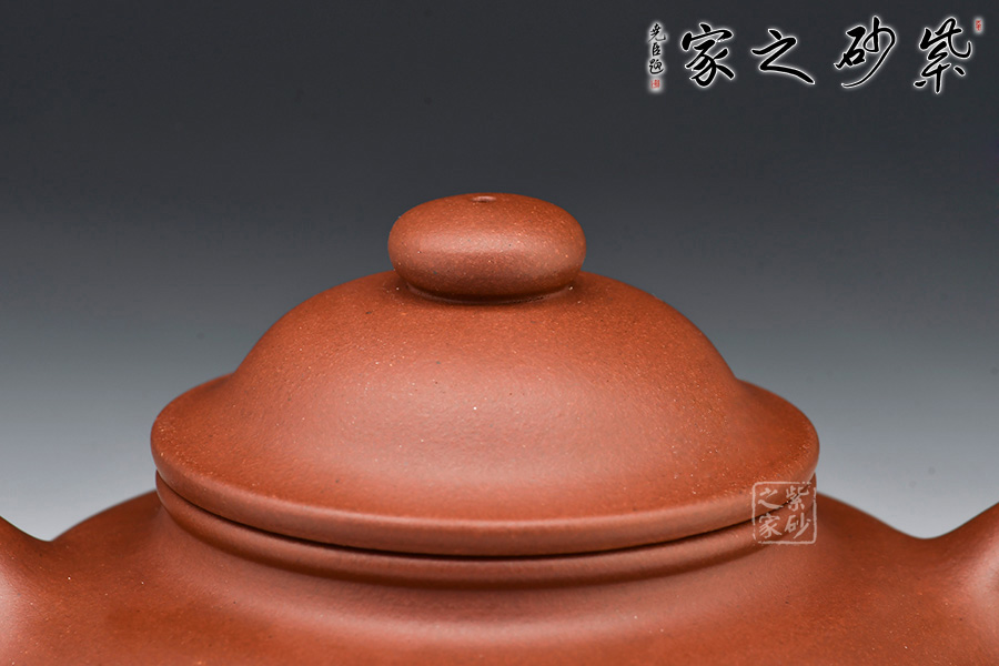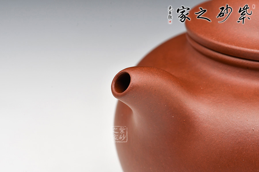 此壺氣度飽滿,舒展流暢,整器顧盼有致,圓潤(rùn)舒展,淡雅飄逸,有閑云野鶴的意蘊(yùn)。蓮子造型,鼓腹、耳形把、二彎流,蓋面凸起,蓋唇與頸唇外翻并相互吻合,口蓋嚴(yán)密、制工精雅。