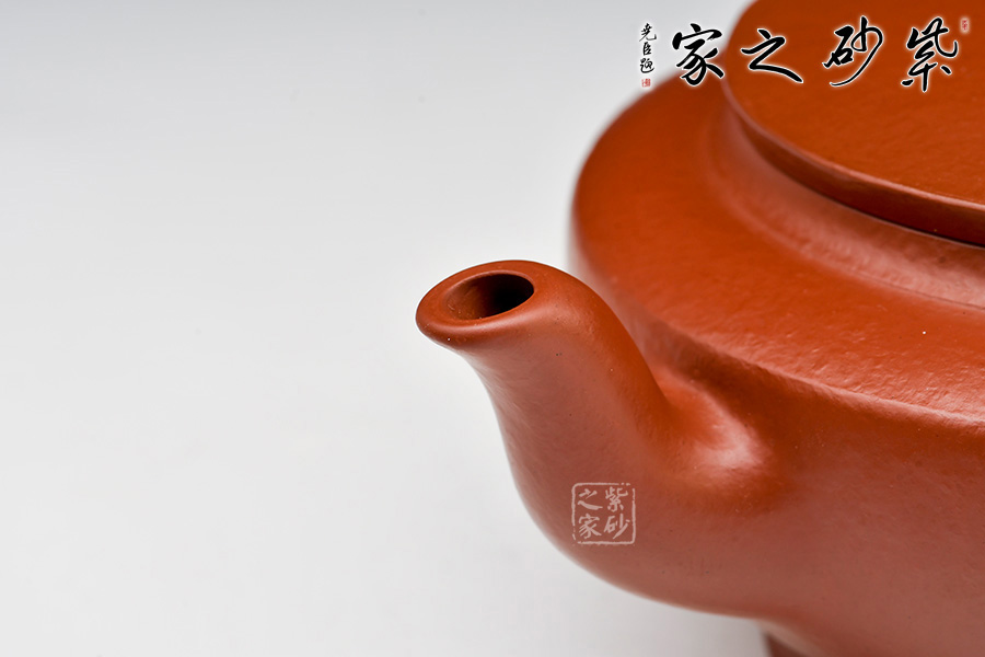 特點:質(zhì)感綿密、緊實細(xì)緻,持之扎實沉重、紅潤豔麗,泥中極品,無以倫比;泥胚含少許原礦顆粒,沖淋熱水后色變極大,呈紅中帶紫,養(yǎng)壺易現(xiàn)“包漿”之美。