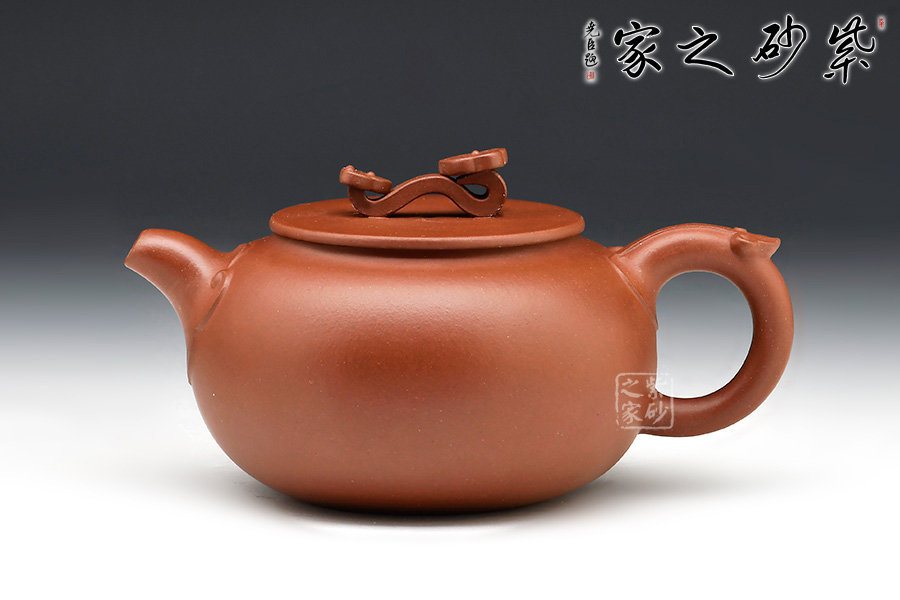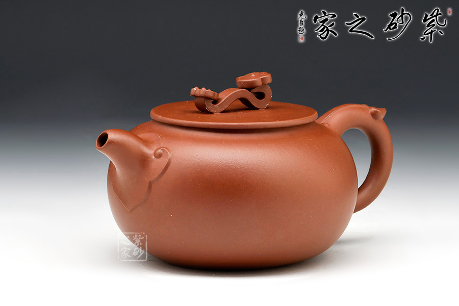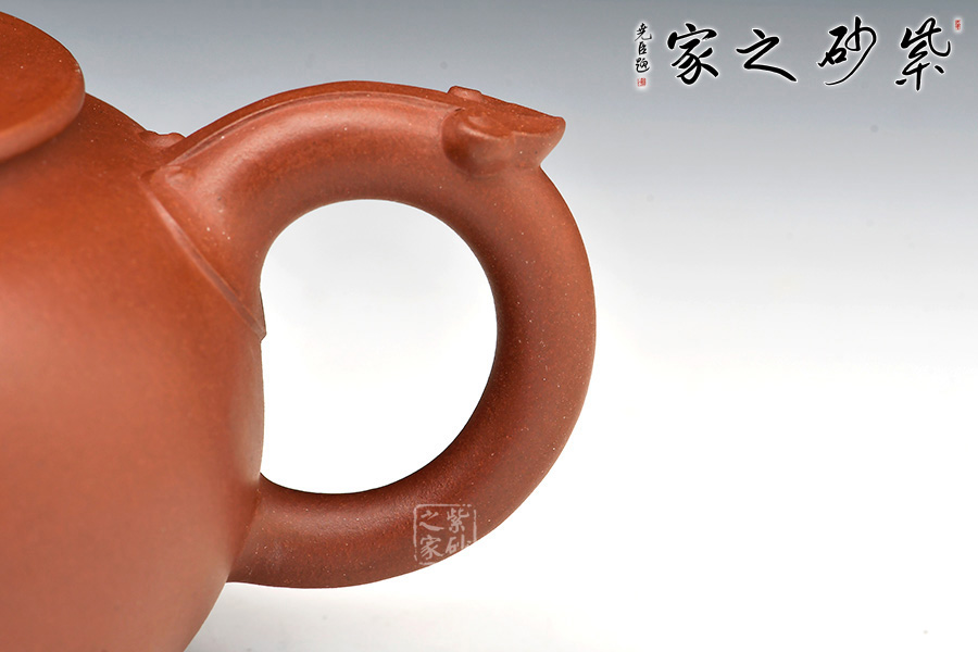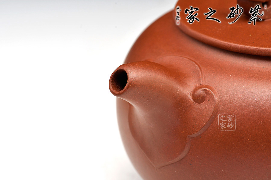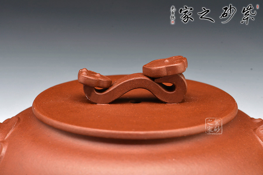 此壺造型別致,壺身圓融飽滿,納福之意。平蓋與壺口吻合嚴(yán)實,福氣滿貫。壺鈕更以玉如意造型,寓意祥瑞,萬事如意。流把上點綴如意花紋,布局靈動,更添喜氣。作品駕馭難度頗高,值得收藏。