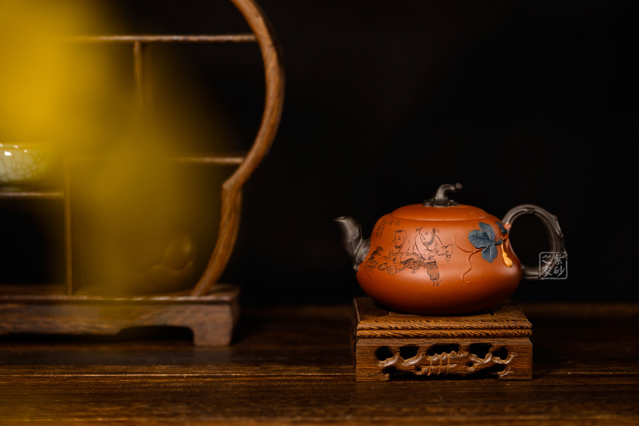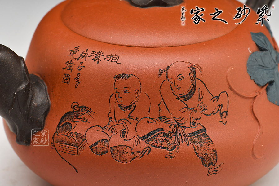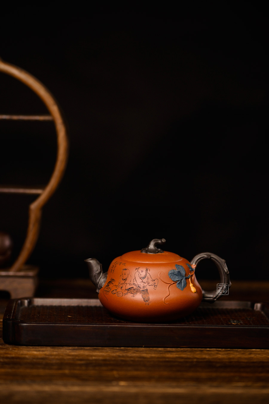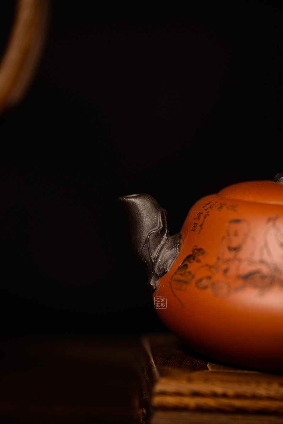 其父朱建偉老師親刻人物詩詞裝飾,壺刻結(jié)合,賞心悅目,收藏價值倍增。