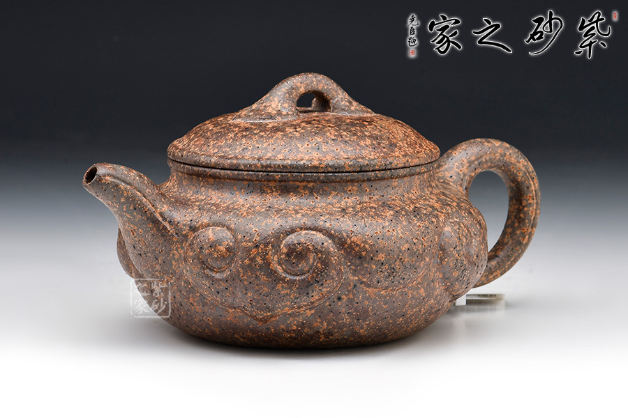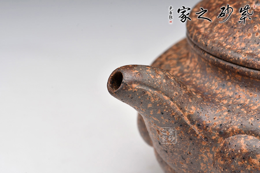 中國紫砂礦料中極為稀少的一種共融礦料,指的就是自然的紅泥、綠泥、降坡泥、段泥、 紫泥等等,甚至更多不同品種的礦料蘊藏在同層面結構的共融礦。通過制作茶壺,把紫砂原礦的砂色美、厚重美、古樸美表現(xiàn)的淋漓盡致,所呈現(xiàn)的砂色效果,燦爛奇幻。