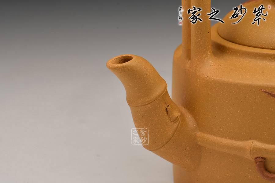 竹子歷來被眾多文人墨客所稱頌,更是成為清高的代名詞,而在紫砂壺藝當中竹子也成了藝人手下最為常見的主題。此款竹節(jié)提梁便是眾多以竹為主題當中的一種。