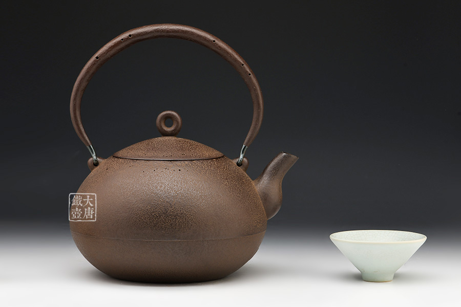 南部鐵器經(jīng)典傳統(tǒng)壺型,環(huán)形摘扭,造型簡雅大方