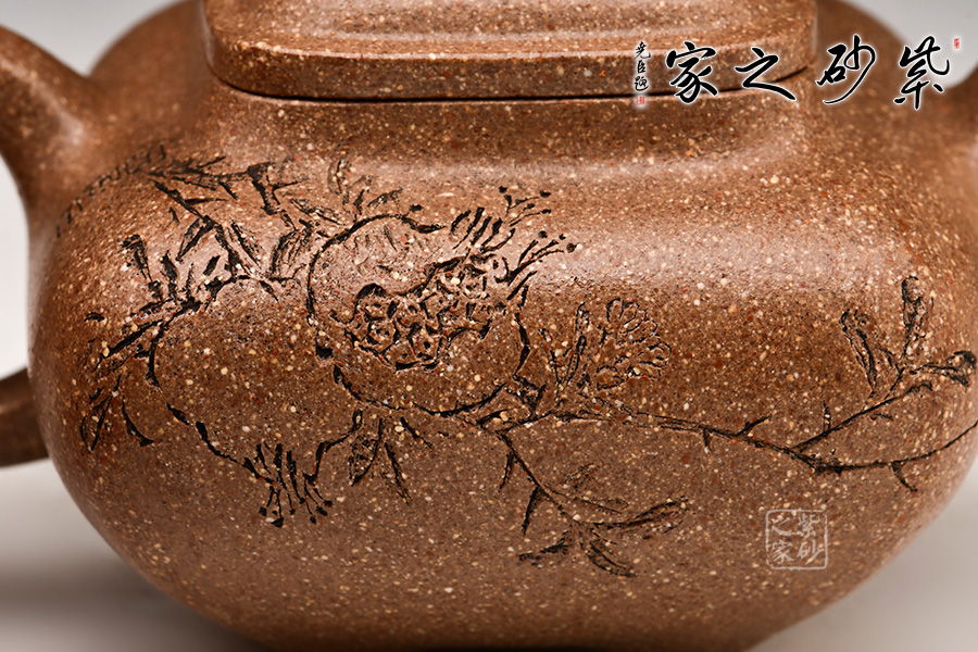 器身形狀以方器為基本形,但方中寓圓,比一般方器多了一份圓潤之美。就制作的難度來看,四方傳爐壺的成型難度高,甚至可謂是紫砂陶器中,最具挑戰(zhàn)性的幾個器形之一。