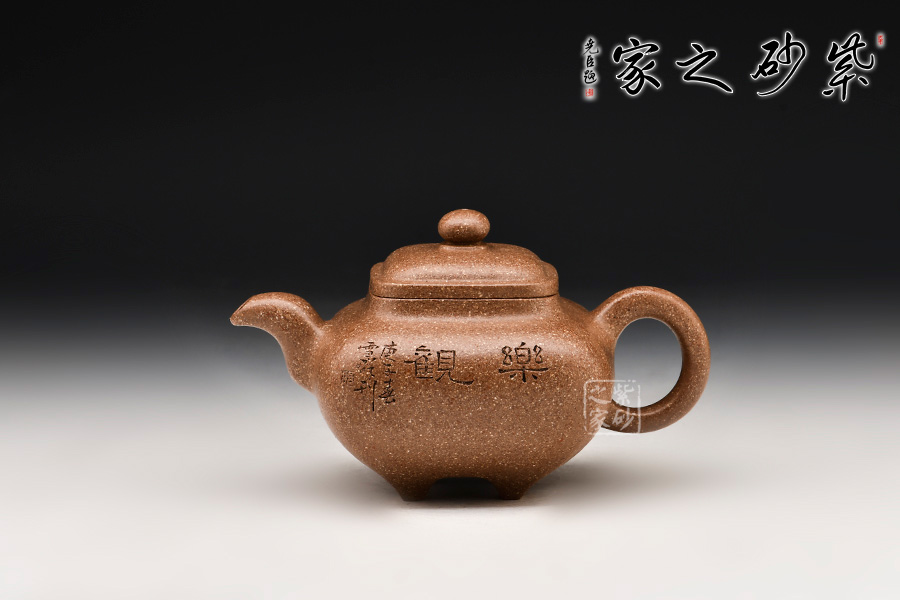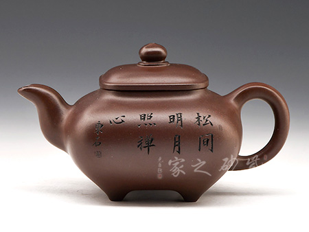 四方傳爐壺為清末創(chuàng)新品種,此壺式方中有圓,圓中寓方,要求比例恰當、珠圓玉潤,實屬不易。