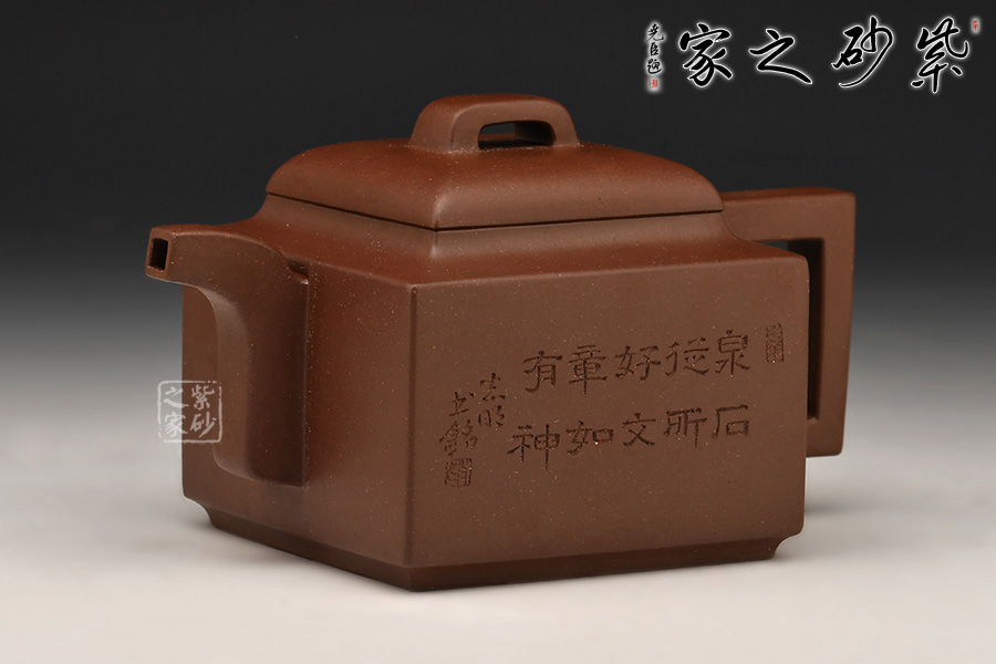 亞明四方是方器中經(jīng)典的器型之一,是著名書畫家亞明先生所設(shè)計,以方器、筋紋器風格見長的王寅春制作,合力完成,此后該種款型的紫砂壺皆被稱為“亞明四方”。