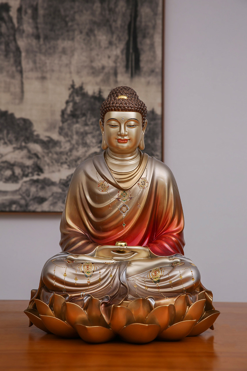 娑婆三圣-阿彌陀佛48cm純銅灼彩