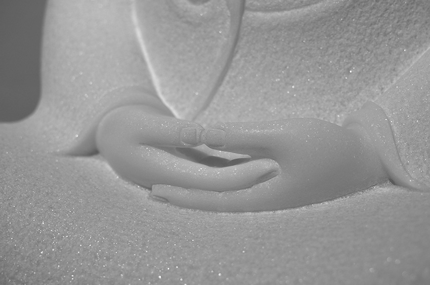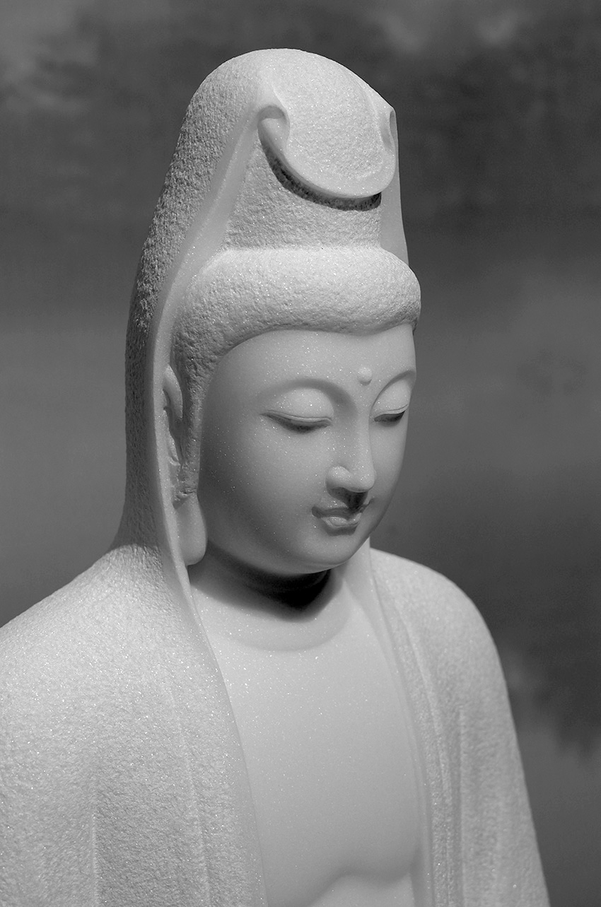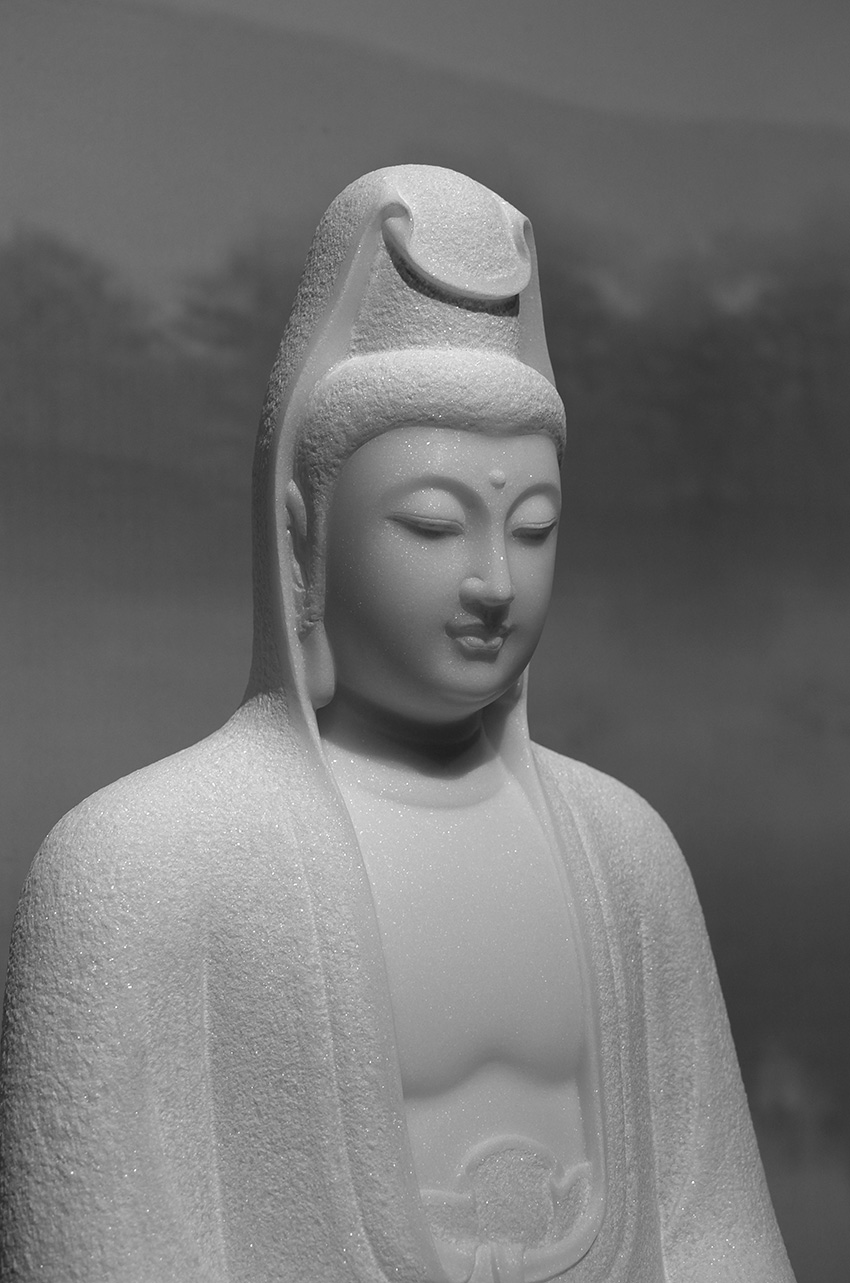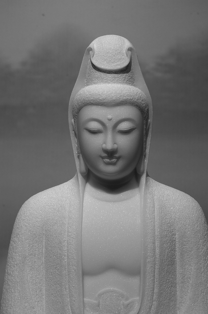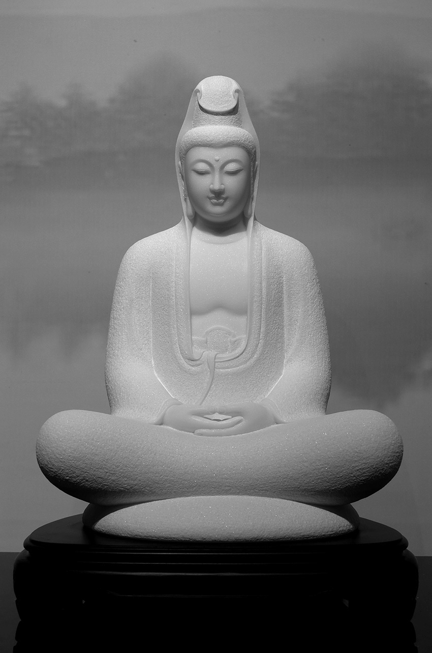 佛像材質(zhì)為漢白玉,通體潔白無瑕,內(nèi)含閃光晶體,晶瑩剔透,熠熠生輝,是一種具有觀賞性的建筑和雕刻材料。