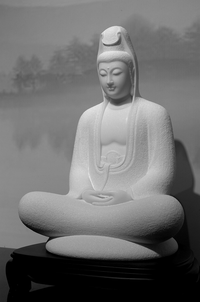 漢白玉娑婆三圣-觀世音菩薩39cm