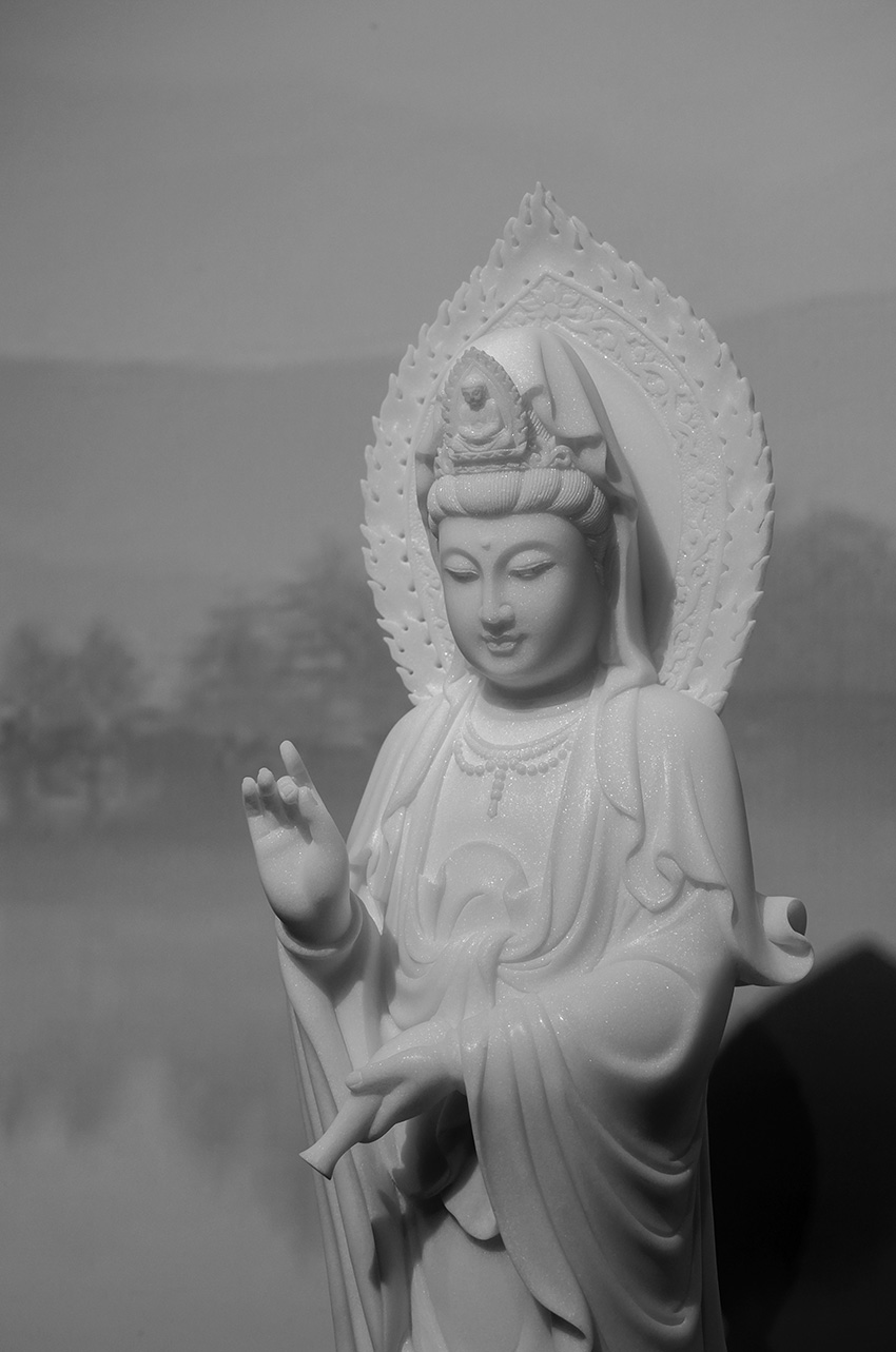 佛像材質(zhì)為漢白玉,通體潔白無瑕,內(nèi)含閃光晶體,晶瑩剔透,熠熠生輝,是一種具有觀賞性的建筑和雕刻材料。