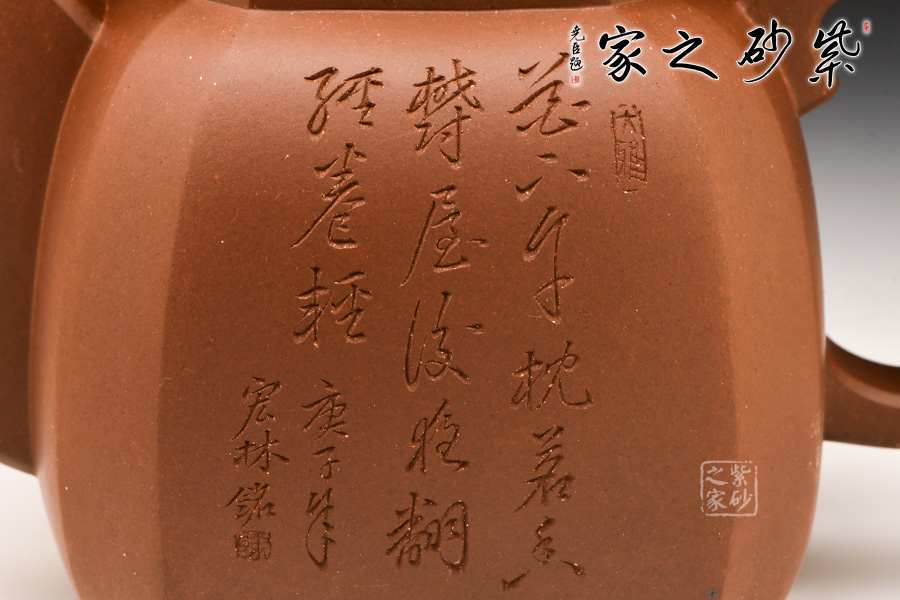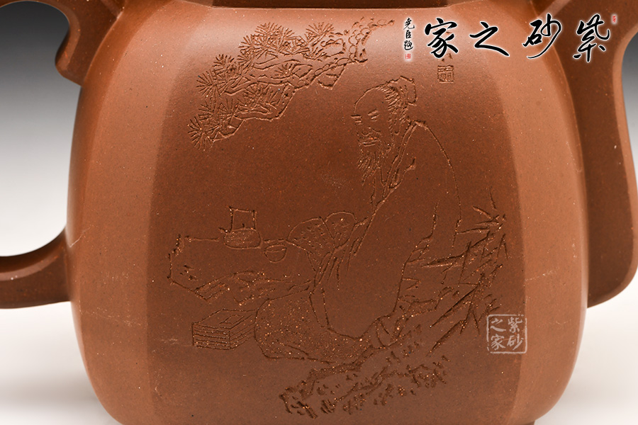 光貨離不開(kāi)裝飾。俗話(huà)說(shuō)“壺隨字貴,字隨壺傳”:光壺不刻字,就是一把光壺;壺上面刻了大師、名人的字,一把壺的含金量就高了,收藏價(jià)值就更高,升值潛力就更大。王福君與中國(guó)工藝美術(shù)大師譚泉海合作最多,其次是徐安碧、鮑志強(qiáng)、毛國(guó)強(qiáng)(均為中國(guó)工藝美術(shù)大師、中國(guó)陶瓷藝術(shù)大師)。