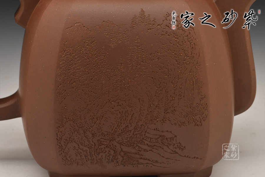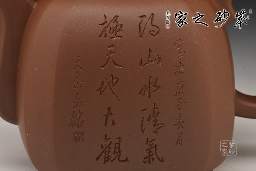 光貨離不開(kāi)裝飾。俗話說(shuō)“壺隨字貴,字隨壺傳”:光壺不刻字,就是一把光壺;壺上面刻了大師、名人的字,一把壺的含金量就高了,收藏價(jià)值就更高,升值潛力就更大。王福君與中國(guó)工藝美術(shù)大師譚泉海合作最多,其次是徐安碧、鮑志強(qiáng)、毛國(guó)強(qiáng)(均為中國(guó)工藝美術(shù)大師、中國(guó)陶瓷藝術(shù)大師)。