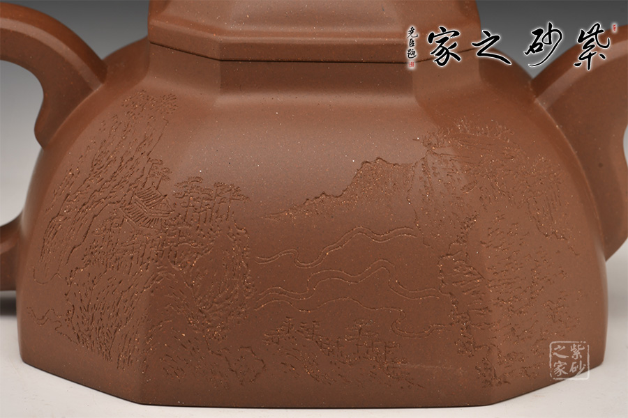 光貨離不開(kāi)裝飾。俗話說(shuō)“壺隨字貴,字隨壺傳”:光壺不刻字,就是一把光壺;壺上面刻了大師、名人的字,一把壺的含金量就高了,收藏價(jià)值就更高,升值潛力就更大。王福君與中國(guó)工藝美術(shù)大師譚泉海合作最多,其次是徐安碧、鮑志強(qiáng)、毛國(guó)強(qiáng)(均為中國(guó)工藝美術(shù)大師、中國(guó)陶瓷藝術(shù)大師)。