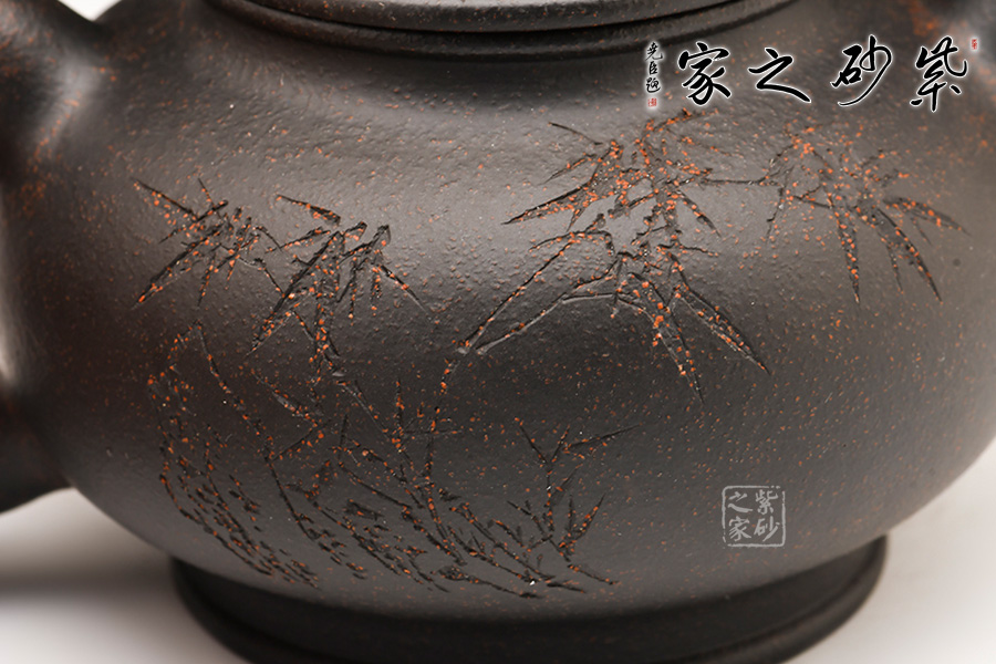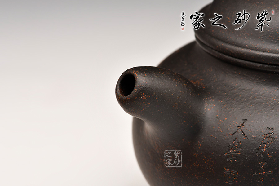黑金砂是紫泥中的精品,經(jīng)高溫?zé)珊髩厣硗w烏黑油亮,隱隱泛著紅色的顆粒有如亞金一樣,極其容易泡養(yǎng)。