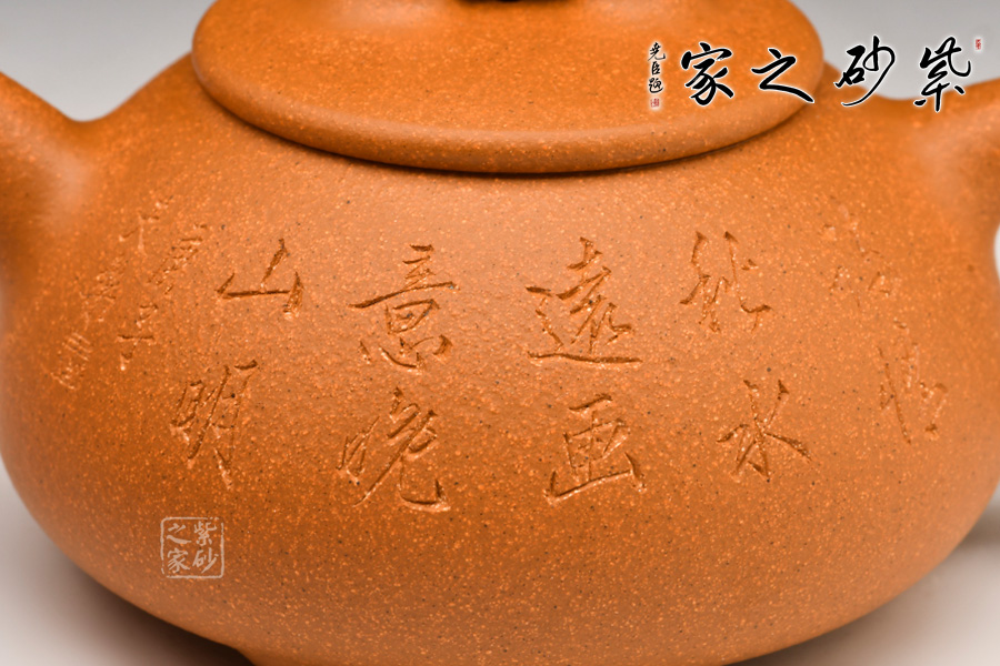 光貨離不開裝飾。俗話說“壺隨字貴,字隨壺傳”:光壺不刻字,就是一把光壺;壺上面刻了大師、名人的字,一把壺的含金量就高了,收藏價值就更高,升值潛力就更大。王福君與中國工藝美術(shù)大師譚泉海合作最多,其次是徐安碧、鮑志強、毛國強(均為中國工藝美術(shù)大師、中國陶瓷藝術(shù)大師)。