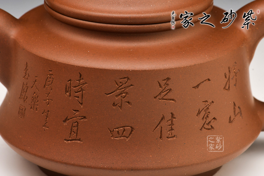 光貨離不開裝飾。俗話說(shuō)“壺隨字貴,字隨壺傳”:光壺不刻字,就是一把光壺;壺上面刻了大師、名人的字,一把壺的含金量就高了,收藏價(jià)值就更高,升值潛力就更大。王福君與中國(guó)工藝美術(shù)大師譚泉海合作最多,其次是徐安碧、鮑志強(qiáng)、毛國(guó)強(qiáng)(均為中國(guó)工藝美術(shù)大師、中國(guó)陶瓷藝術(shù)大師)。