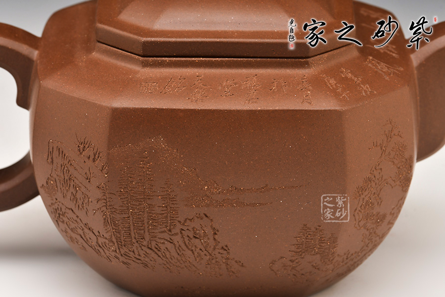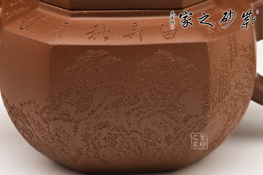 光貨離不開裝飾。俗話說“壺隨字貴,字隨壺傳”:光壺不刻字,就是一把光壺;壺上面刻了大師、名人的字,一把壺的含金量就高了,收藏價(jià)值就更高,升值潛力就更大。王福君與中國(guó)工藝美術(shù)大師譚泉海合作最多,其次是徐安碧、鮑志強(qiáng)、毛國(guó)強(qiáng)(均為中國(guó)工藝美術(shù)大師、中國(guó)陶瓷藝術(shù)大師)。