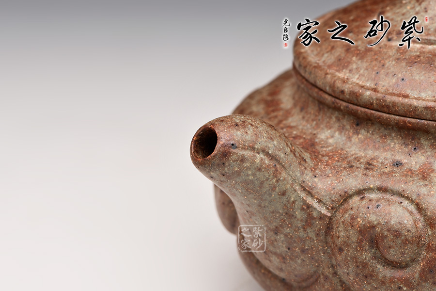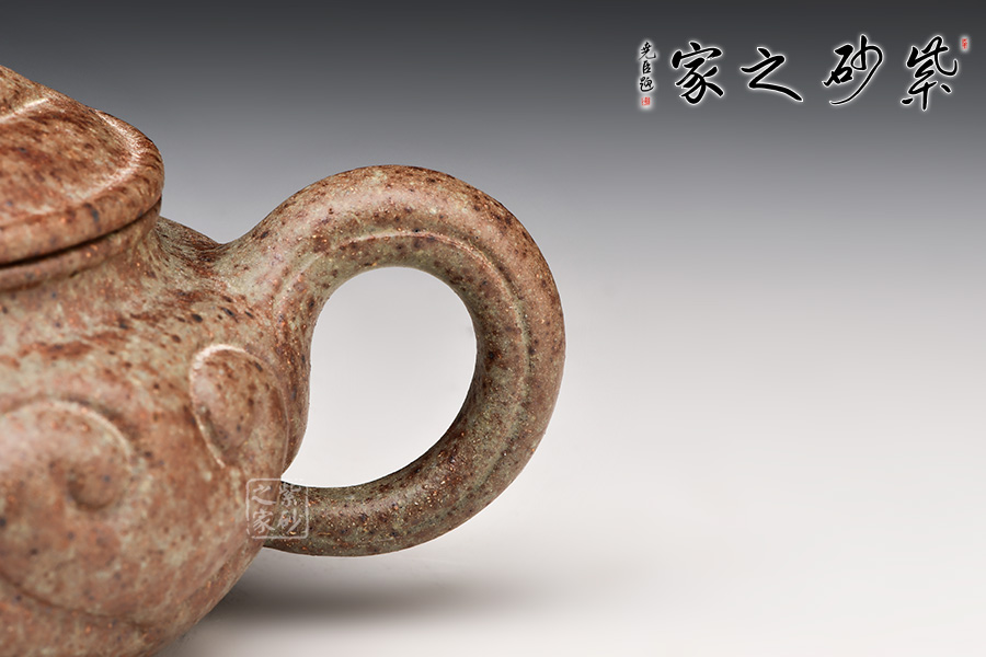 中國紫砂礦料中極為稀少的一種共融礦料,指的就是自然的紅泥、綠泥、降坡泥、段泥、 紫泥等等,甚至更多不同品種的礦料蘊藏在同層面結構的共融礦。通過制作茶壺,把紫砂原礦的砂色美、厚重美、古樸美表現(xiàn)的淋漓盡致,所呈現(xiàn)的砂色效果,燦爛奇幻。