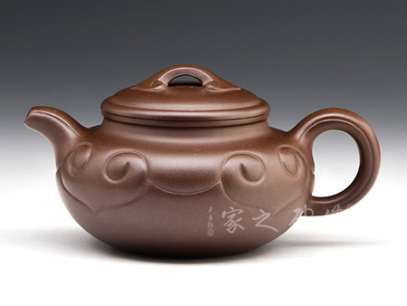 仿古如意在傳統(tǒng)仿古扁壺造型上加飾如意筋紋,身、蓋、頸、腹、鈕,錯落有致,骨肉亭勻。壺的口沿與壺蓋截成一條圓線,口蓋各占一半,蓋子蓋上即合成飽滿的圓線,其對作者的考量可想而知。壺流胥出自然,壺把勻勢而起,且與壺身如意貫氣。壺鈕為如意形橋梁式,平緩舒展合體,整器精美絕倫,呈悠然、典雅之美。