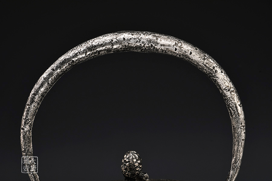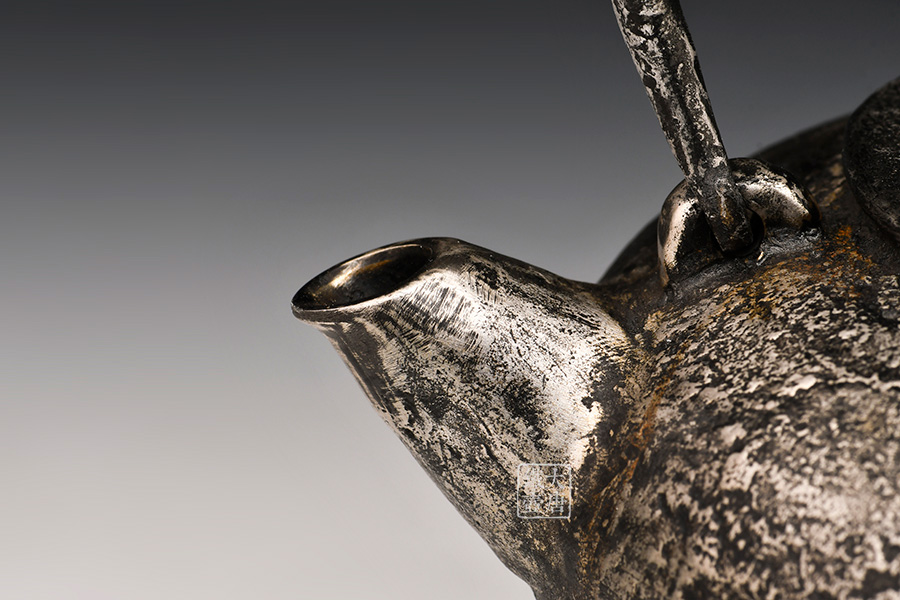 荒井工房的鐵瓶除了在鑄造工藝上有嚴(yán)格的規(guī)范和體系,在鐵瓶裝飾技術(shù)上也頗有建樹。除了傳統(tǒng)的印刻技術(shù)外,荒井工房還掌握了非常出色的金銀鑲嵌技藝,尤其以大片的鏨刻銀片最為出眾,這在山形當(dāng)?shù)靥每谥歇?dú)樹一幟。