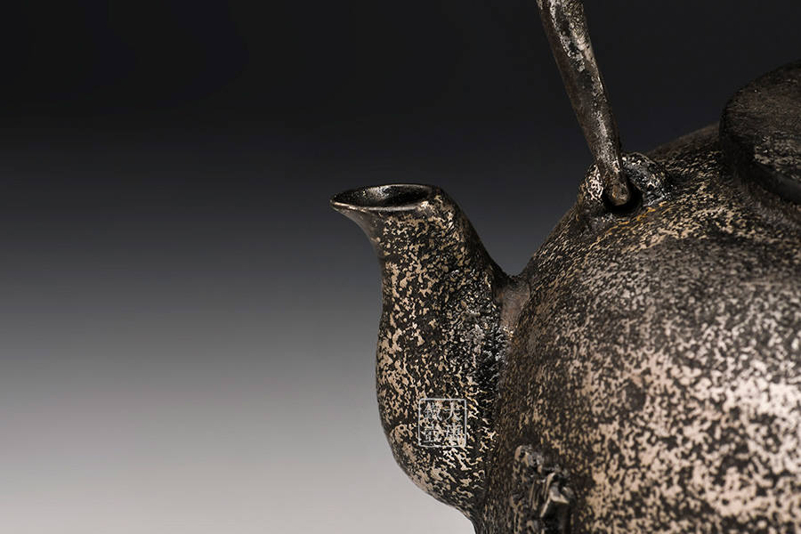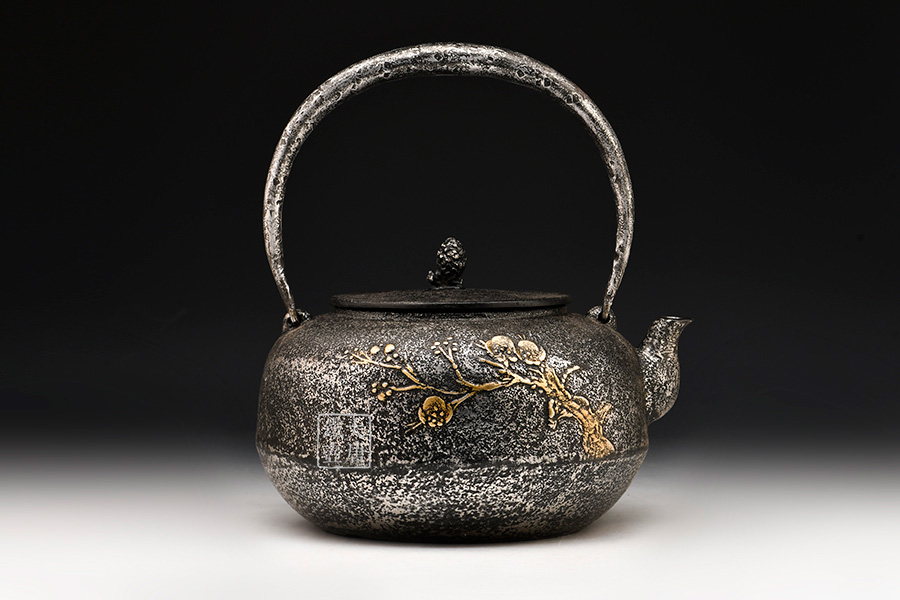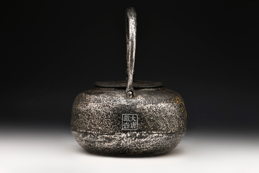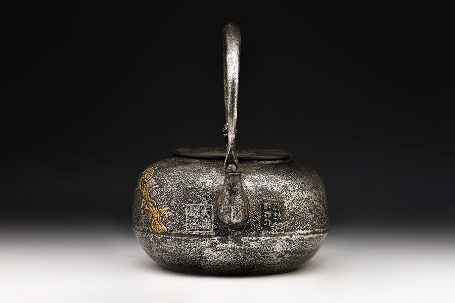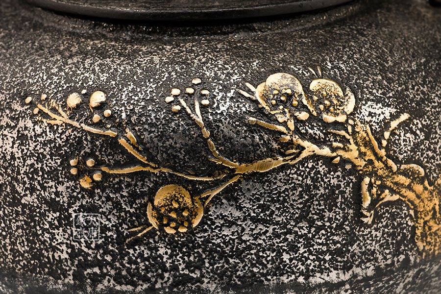 荒井工房的鐵瓶除了在鑄造工藝上有嚴(yán)格的規(guī)范和體系,在鐵瓶裝飾技術(shù)上也頗有建樹。除了傳統(tǒng)的印刻技術(shù)外,荒井工房還掌握了非常出色的金銀鑲嵌技藝,尤其以大片的鏨刻銀片最為出眾,這在山形當(dāng)?shù)靥每谥歇?dú)樹一幟。