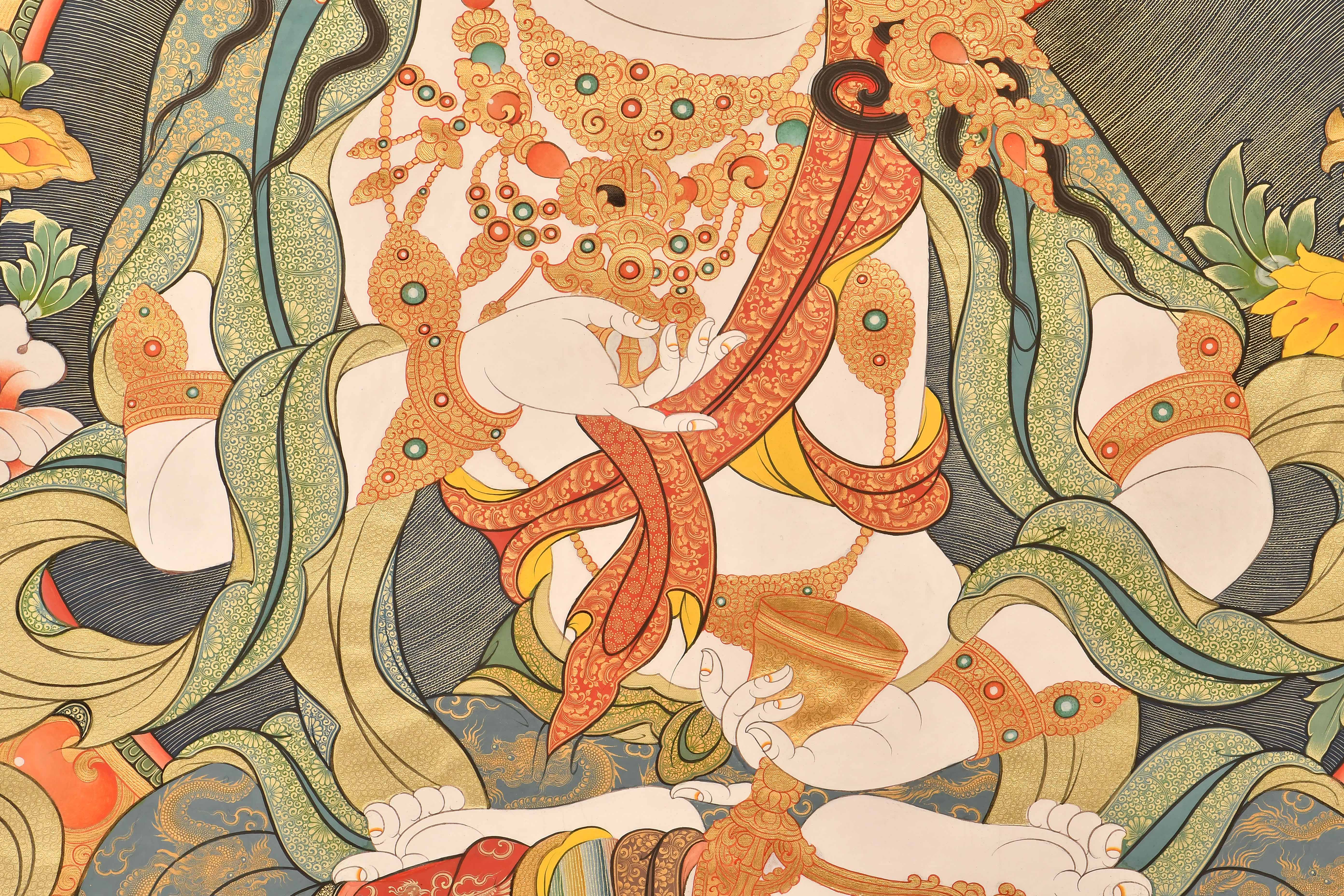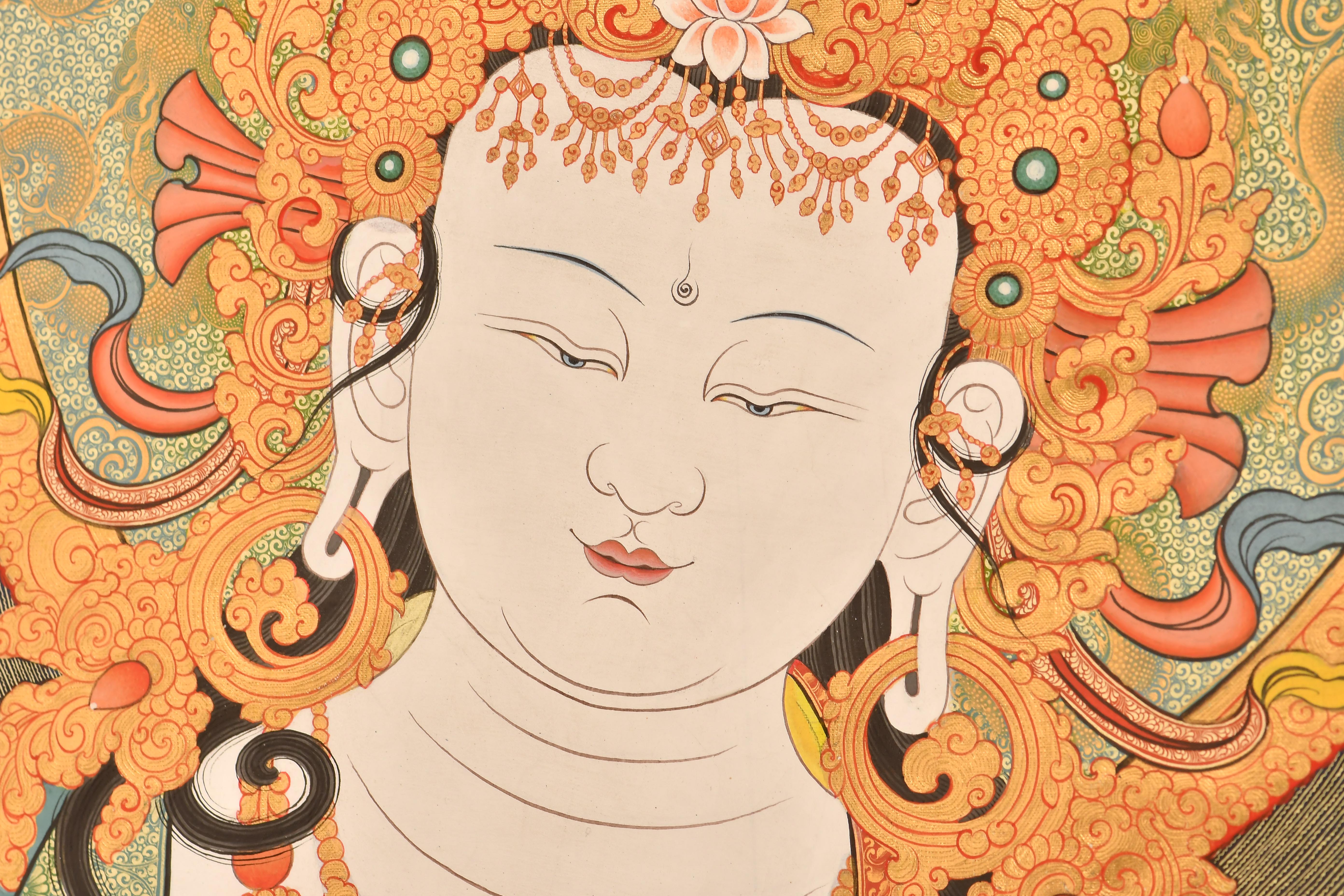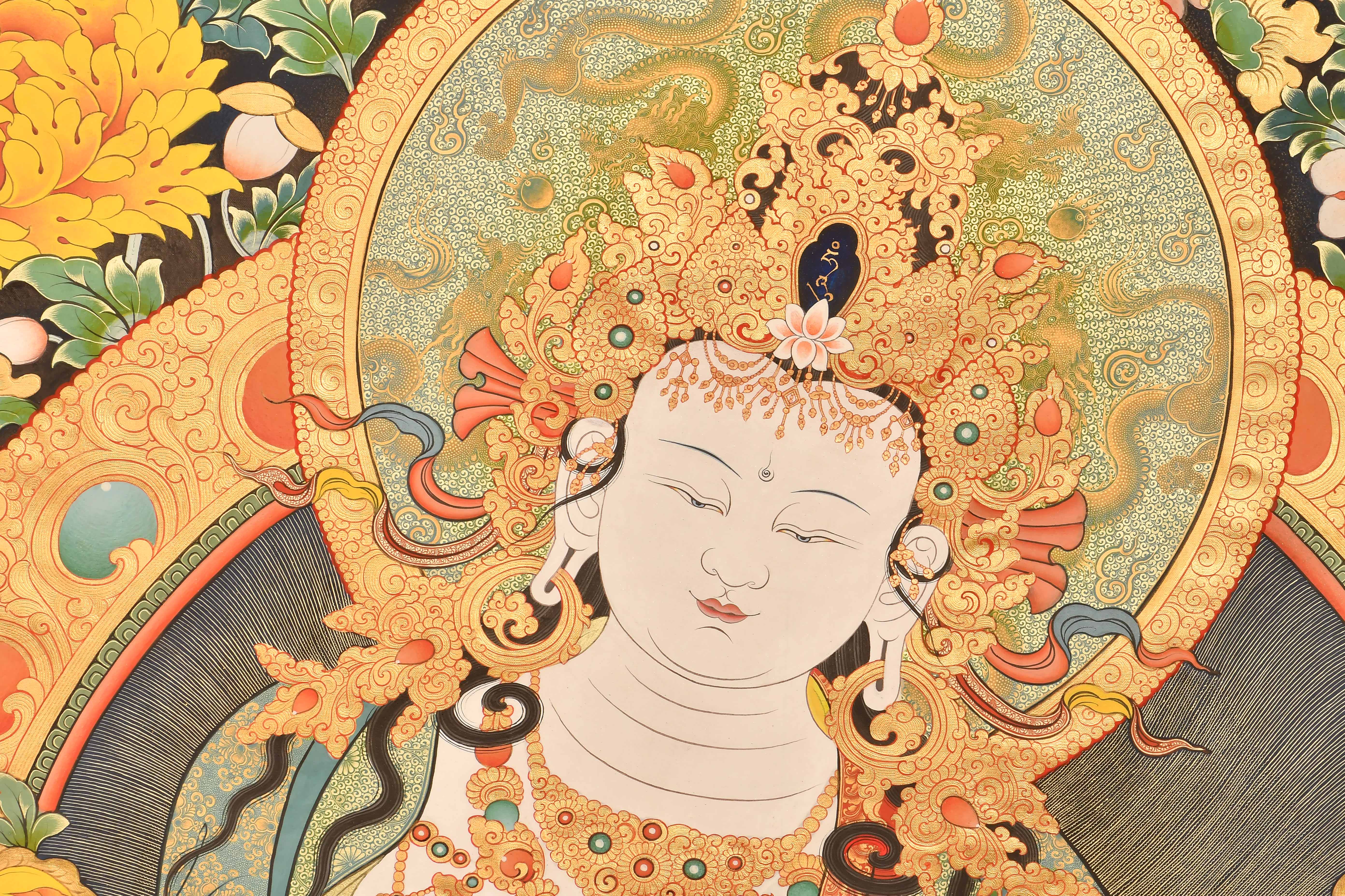 | 唐卡是歷史的瑰寶,現(xiàn)已被例入國家非物質文化遺產(chǎn)名錄,得到了高度的重視和保護。同時由于顏料的珍稀、繪制周期長、工藝復雜大大增強了其珍藏價值。一幅好的作品可遇不可求,近年來唐卡已成為收藏界炙手可熱的藏品。 | 唐卡的形式便于攜帶,其內(nèi)容體現(xiàn)了藏傳佛教的莊重、神圣、華貴,被稱為“移動的佛像”。同時也是修行者積累善業(yè),追尋心靈的平靜與安寧的一個過程。 | 唐卡的內(nèi)容包羅萬象,它以圖像的方式承載著藏族文化精髓,是藏族智慧的結晶,廣泛傳播了藏地的文化、歷史和宗教理論。 | 唐卡絢麗的色彩、流暢的線條、嚴謹?shù)慕Y構,都充滿著濃郁的高原和游牧民族風情,無疑是難得的藝術珍品。值得一提的是唐卡繪制顏料全部為天然礦物顏料,畫面效果艷麗,可以保存千年而不變色。 |
