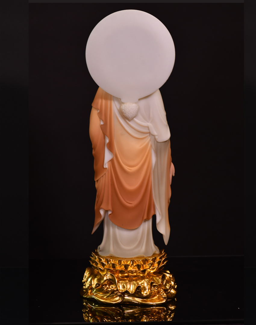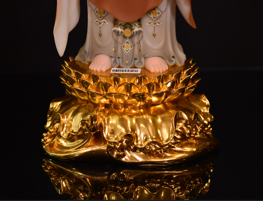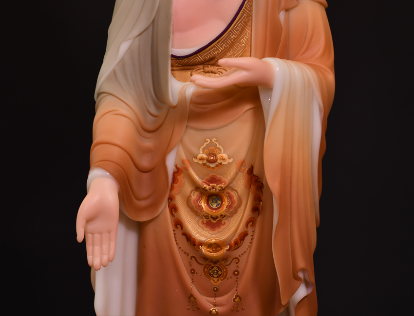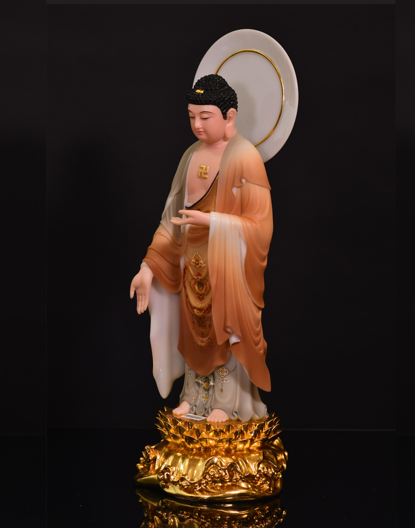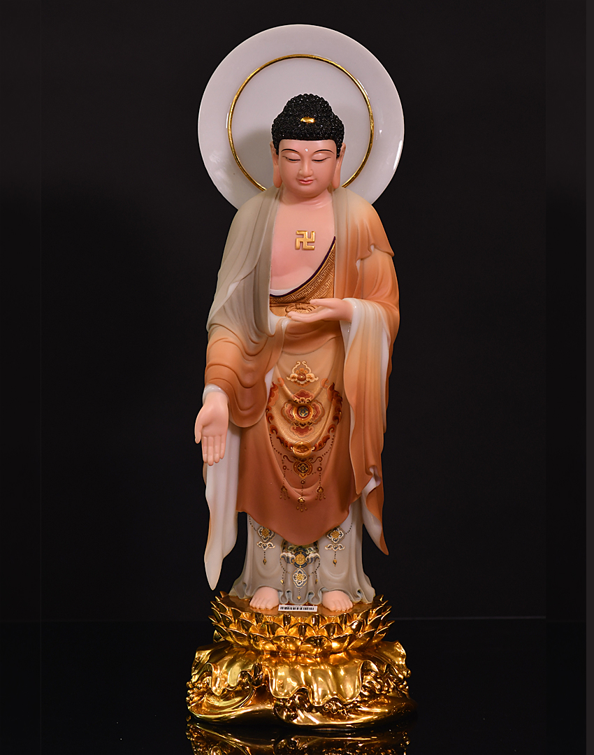 此尊佛像高度為48公分,站立佛形象,材質為玉石材質,用彩釉工藝制作而成。