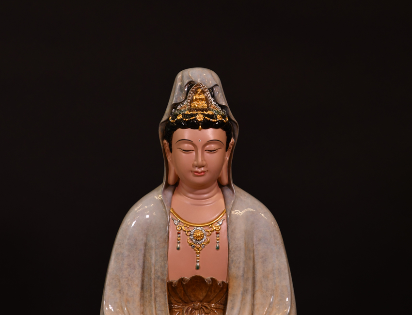 產(chǎn)地:福建 工藝:高溫著色 創(chuàng)作年份:2020 題材:觀音菩薩 繪制時間:0日 尺寸:*48cm 裝裱: 材質(zhì):紫銅 使用場地:走廊
