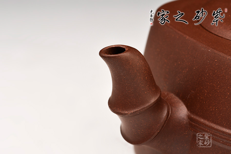 戴亞強(qiáng)老師這款《竹報(bào)平安》壺,精選原礦底槽青,泥色古樸。壺體簡潔端莊,大方爽利。壺身四方,穩(wěn)重敦厚,壺腹棱線裝飾,層次分明,更顯氣韻充沛。