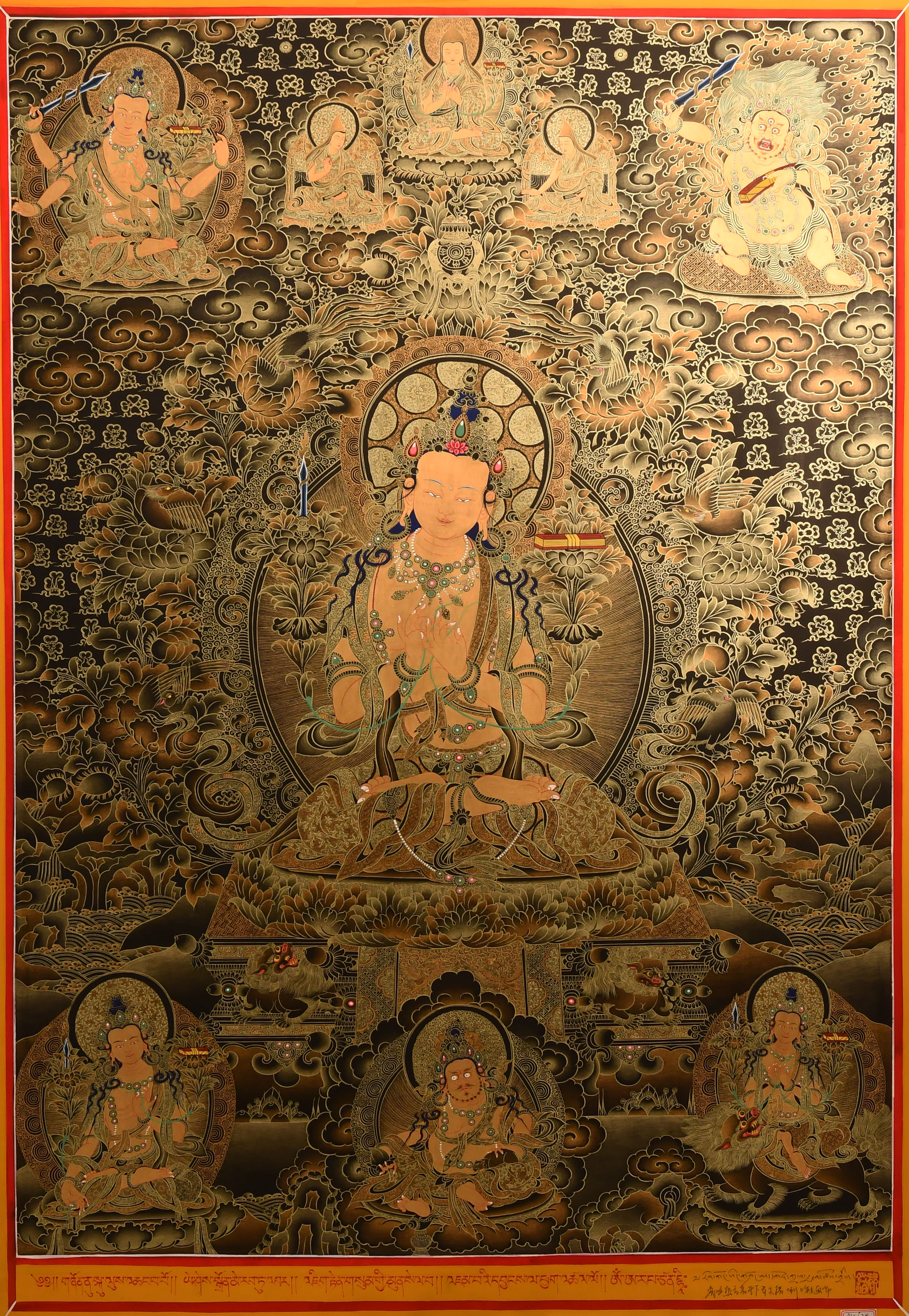 熱貢唐卡文殊菩薩黑金100x70cm
