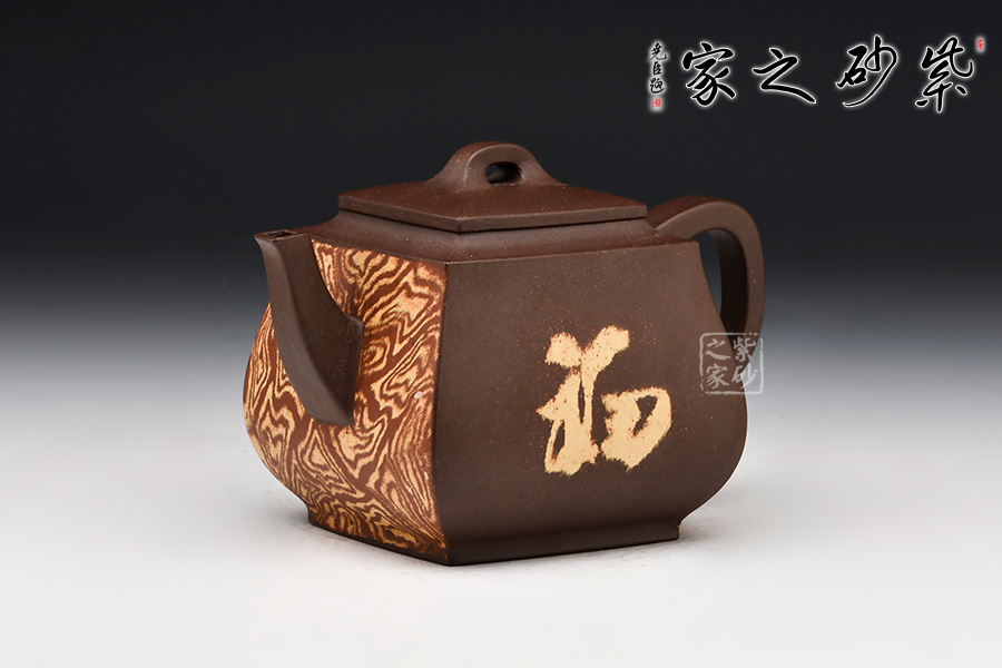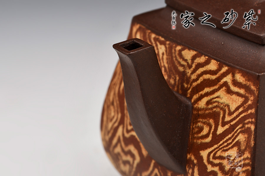 此壺闊腹,四方圈足,橋型鈕,整器端莊,自然之韻味十足,紋理雅致,特別出眾,讓人過(guò)目不忘!