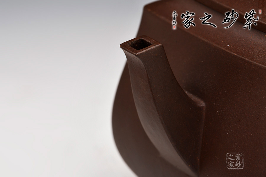此壺闊腹,四方圈足,橋型鈕,整器端莊,自然之韻味十足,紋理雅致,特別出眾,讓人過目不忘!