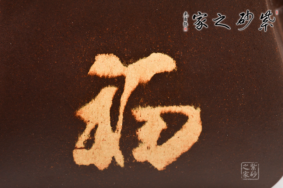 此壺非常有特色,壺身用絞泥工藝作“發(fā)、福”二字,寓意美好,收壺得福。