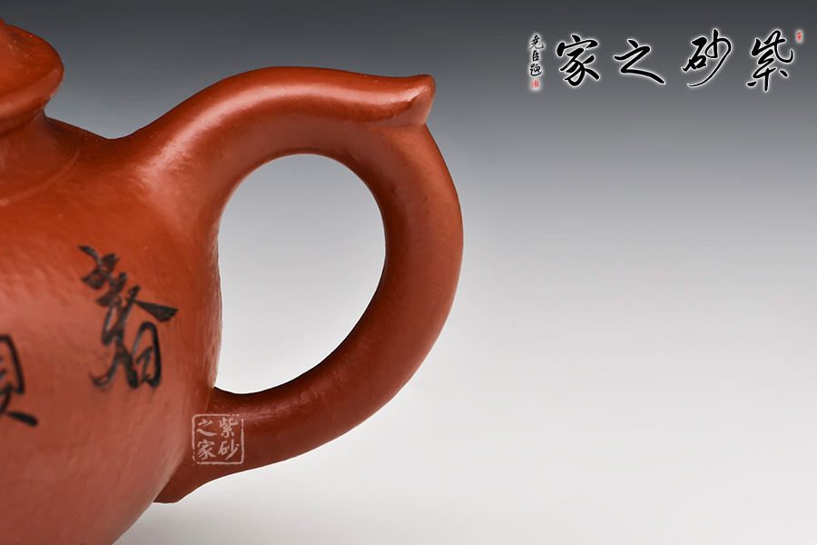 圓腹,由上而下漸斂至圈足,形體線條流暢一體。其形制沉穩(wěn)扎實,細節(jié)處理安排得當,宛若櫻桃的壺鈕,與之相呼應,呈現(xiàn)出不同的韻味。