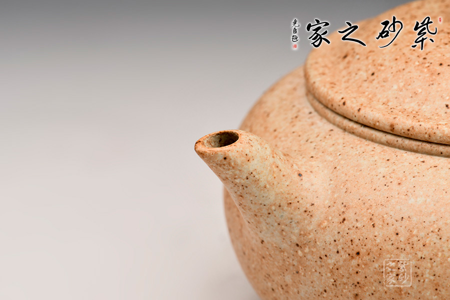 中國紫砂礦料中極為稀少的一種共融礦料,指的就是自然的紅泥、綠泥、降坡泥、段泥、 紫泥等等,甚至更多不同品種的礦料蘊(yùn)藏在同層面結(jié)構(gòu)的共融礦。通過制作茶壺,把紫砂原礦的砂色美、厚重美、古樸美表現(xiàn)的淋漓盡致,所呈現(xiàn)的砂色效果,燦爛奇幻。