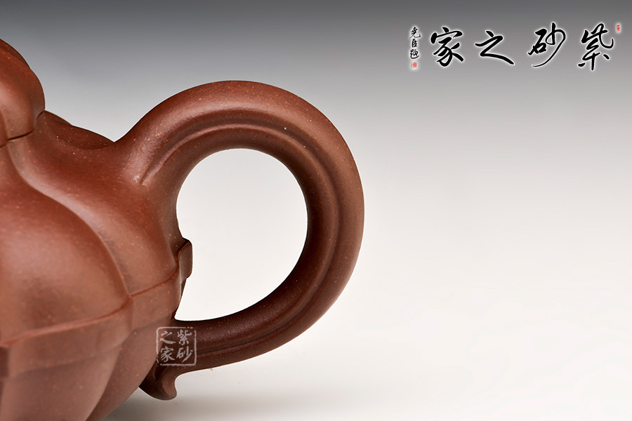 壺式由線圓壺變化而來(lái),橋鈕與菱花瓣相融,嘴作棱花式,胥出自然,把彎曲恰體,端握方便。