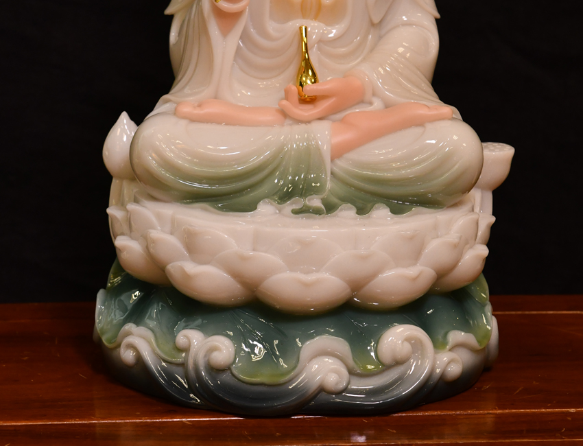 產(chǎn)地:福建 工藝:彩釉 創(chuàng)作年份:2020 題材:觀音菩薩 繪制時間:0日 尺寸:*40cm 裝裱: 材質(zhì):人造玉 使用場地: