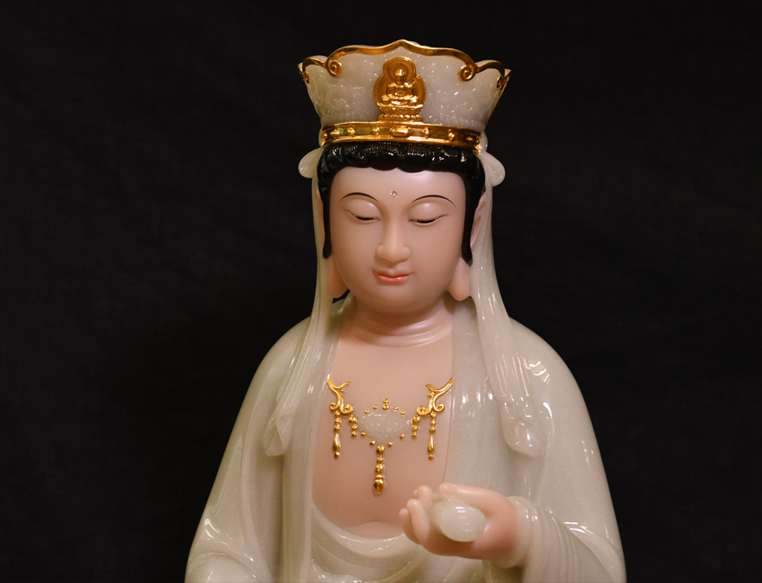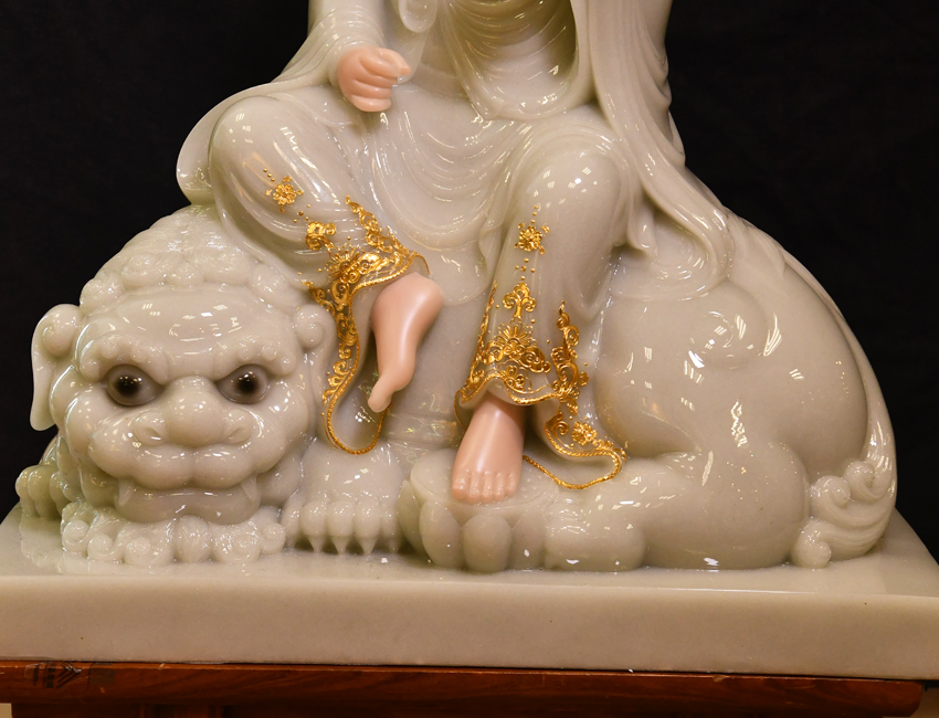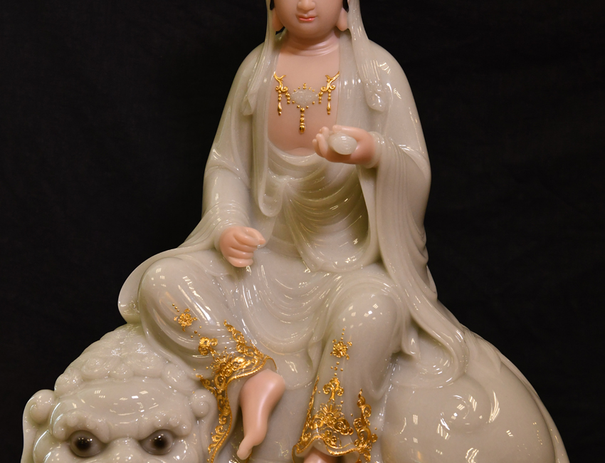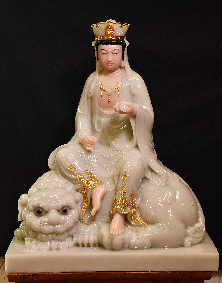 產(chǎn)地:福建 工藝:鑲金 創(chuàng)作年份:2020 題材:文殊菩薩 繪制時間:0日 尺寸:*68cm 裝裱: 材質(zhì):人造玉 使用場地: