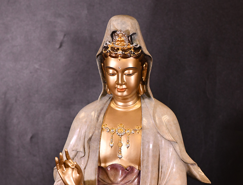 觀音開臉寧靜秀美,眼觀鼻,鼻觀心,自在安然,是不可多得的優(yōu)質(zhì)佳作。