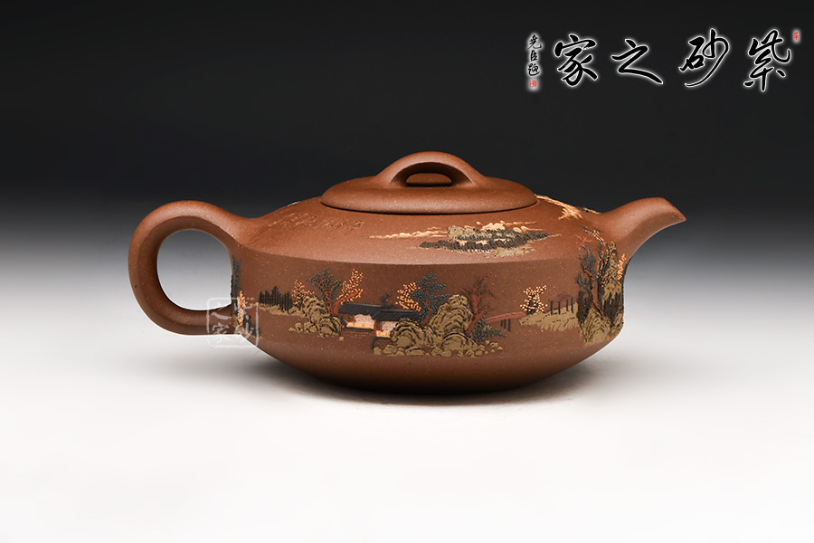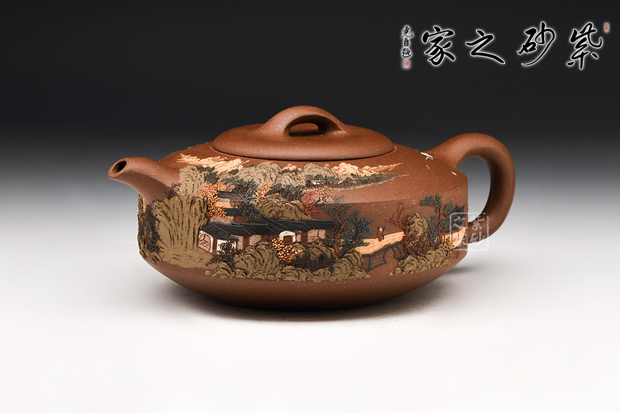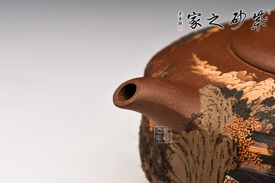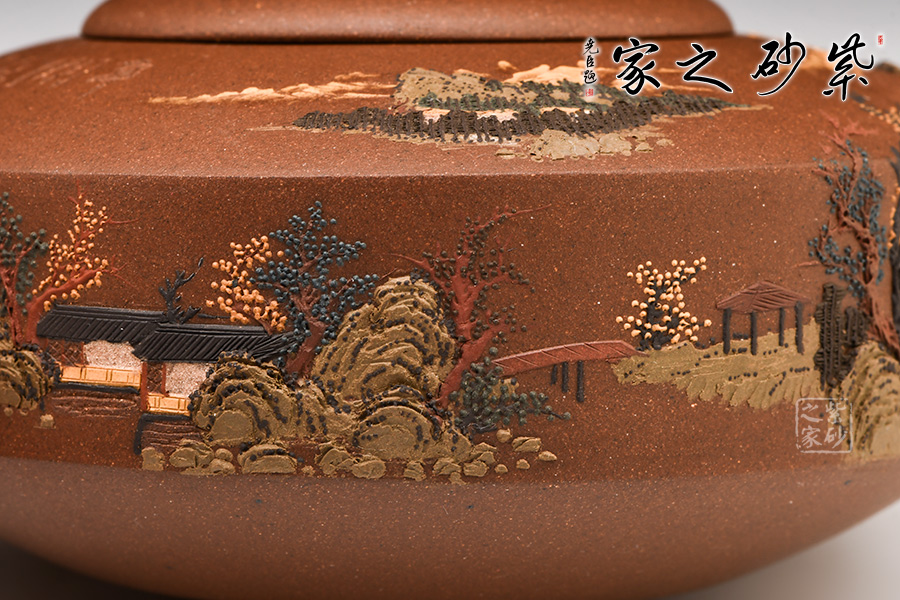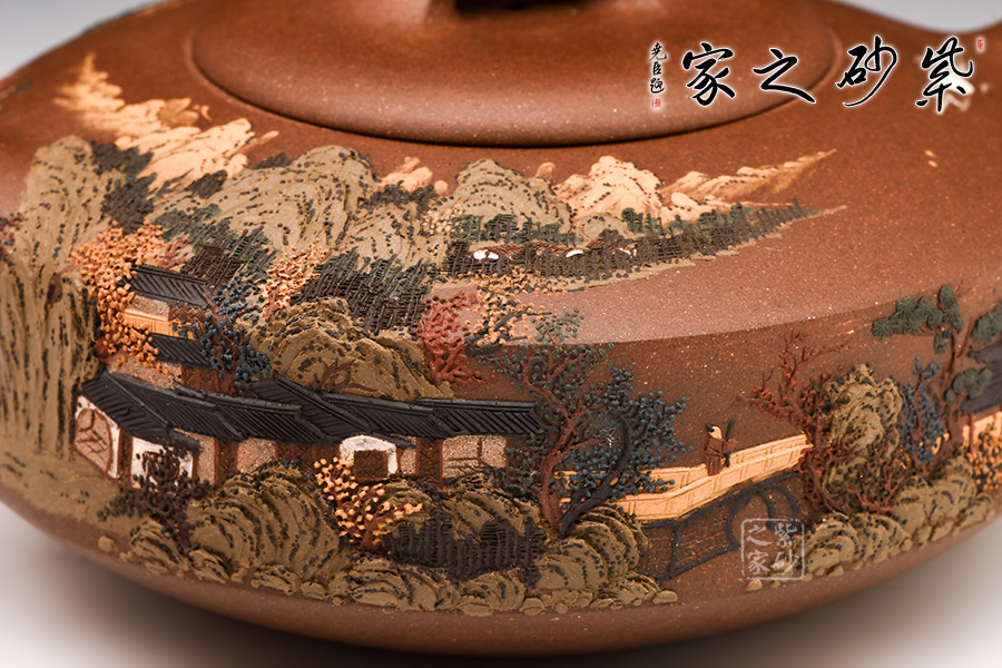 施昌在紫砂壺泥繪創(chuàng)作時,在“構(gòu)圖”與“意境”上,做到了畫面氣氛與藝術(shù)美感的有機統(tǒng)一,讓觀賞的人擁有思考、參與、回味的視覺和心理空間。