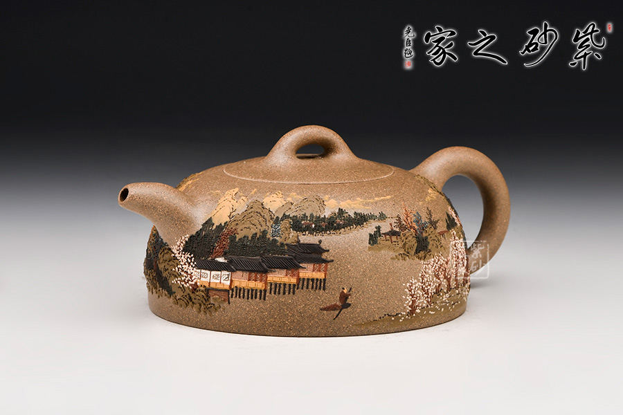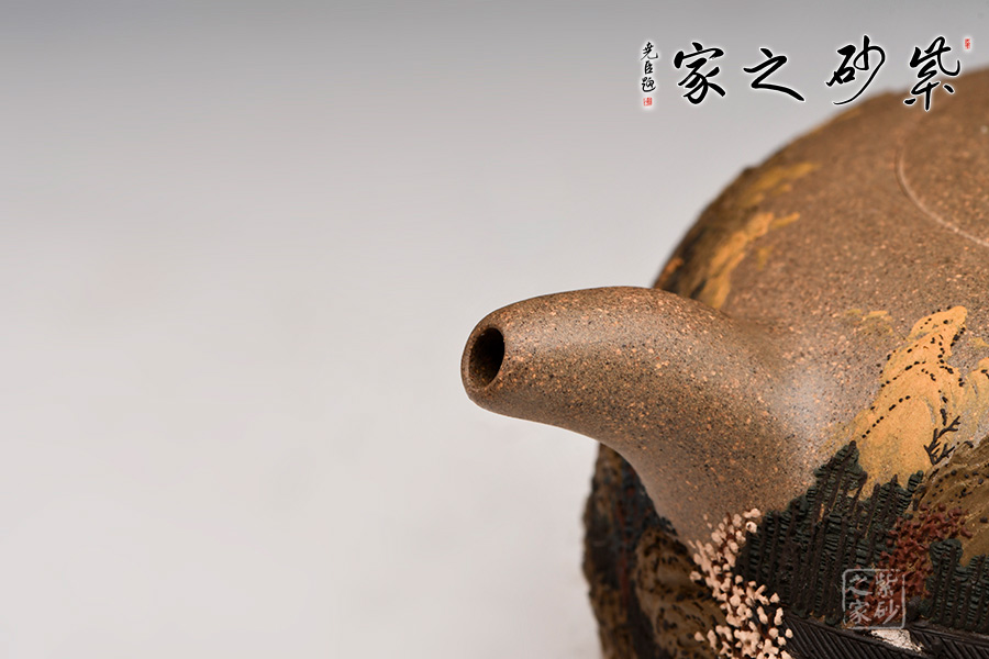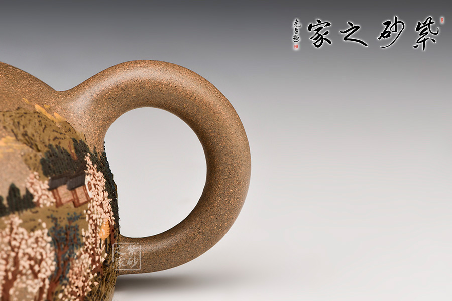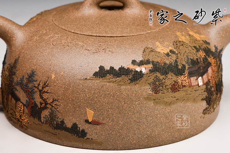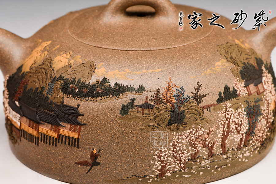 施昌在紫砂壺泥繪創(chuàng)作時(shí),在“構(gòu)圖”與“意境”上,做到了畫面氣氛與藝術(shù)美感的有機(jī)統(tǒng)一,讓觀賞的人擁有思考、參與、回味的視覺和心理空間。