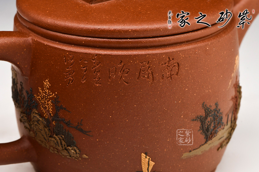 特點(diǎn):原礦因含緞泥、紅泥、紫泥等諸多共生礦,陶之后,于深沉之“橙紅色”底上,滿佈五彩斑斕的粗細(xì)、深淺之紅、黃星斑點(diǎn)。