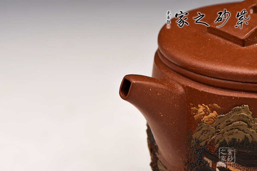 泥性:原礦因含緞泥、紅泥、紫泥等諸多共生礦,陶之后,于深沉之“橙紅色”底上,滿佈五彩斑斕的粗細(xì)、深淺之紅、黃星斑點(diǎn)。