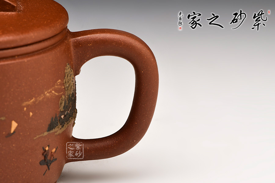 施昌在紫砂壺泥繪創(chuàng)作時(shí),在“構(gòu)圖”與“意境”上,做到了畫(huà)面氣氛與藝術(shù)美感的有機(jī)統(tǒng)一,讓觀賞的人擁有思考、參與、回味的視覺(jué)和心理空間。