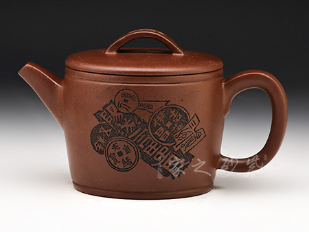 此作為經(jīng)典紫砂壺型漢瓦,圓筒形壺體,蓋平略見(jiàn)弧,橋式鈕。壺蓋子口制作圓而不規(guī),轉(zhuǎn)捻即緊,全器思致淵雅,古趣昂然。漢瓦壺廣口大蓋,出水流暢,倒茶倒水都十分方便。