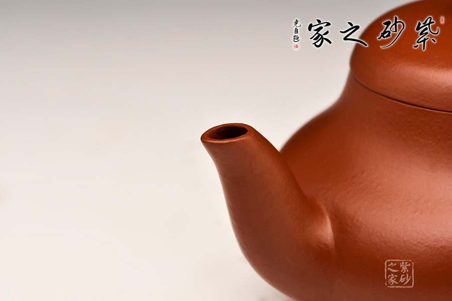 特點:質感綿密、緊實細緻,持之扎實沉重、紅潤豔麗,泥中極品,無以倫比;泥胚含少許原礦顆粒,沖淋熱水后色變極大,呈紅中帶紫,養(yǎng)壺易現“包漿”之美。