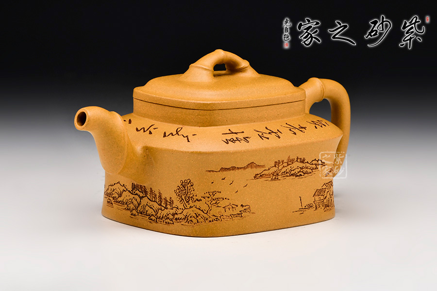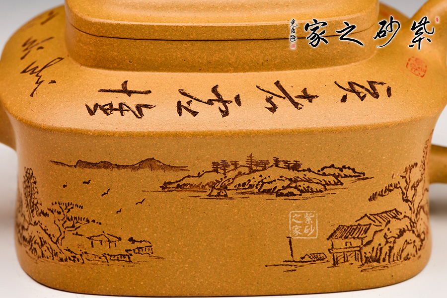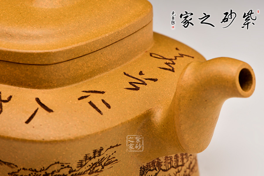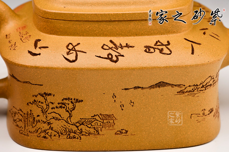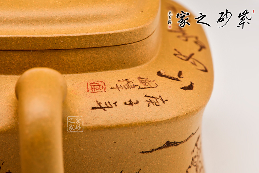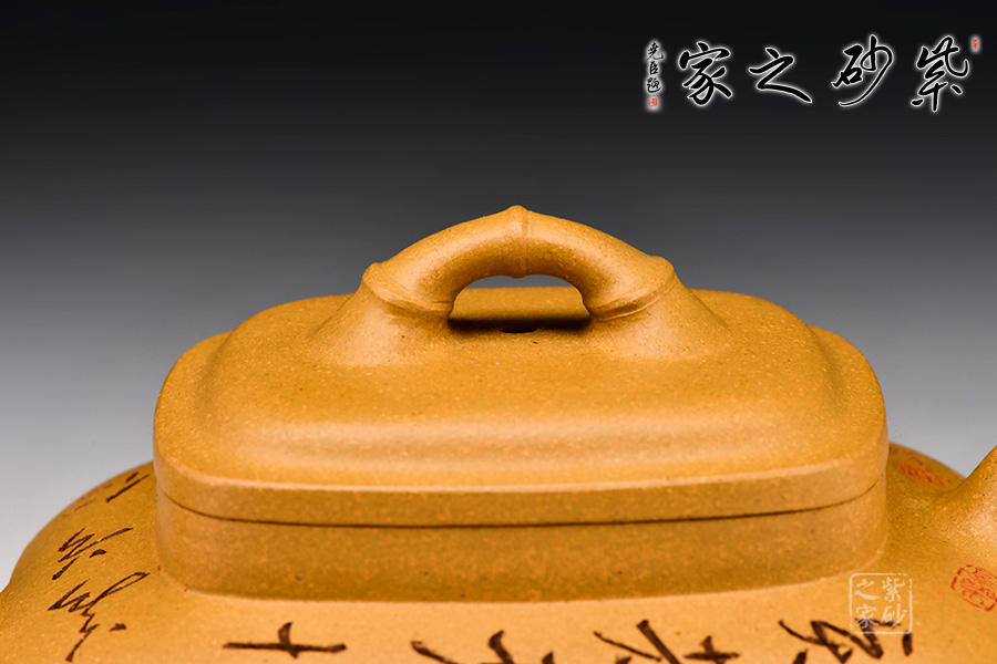 此壺四方,古樸大氣,壺身方中寓圓,飽滿圓湛,底、肩、口、蓋,端莊穩(wěn)重,有節(jié)奏之美。