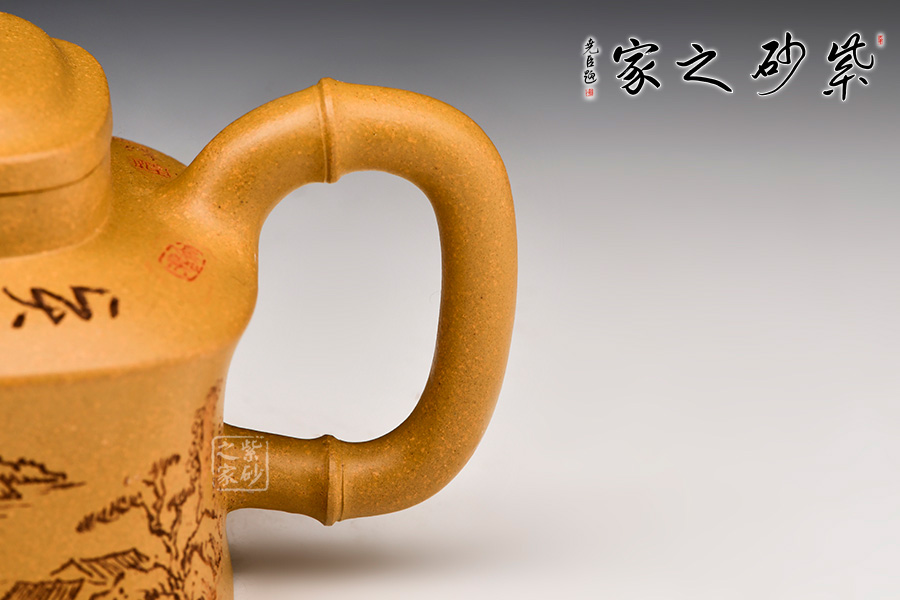 流、鈕、把以竹節(jié)表現(xiàn),身桶為方式展現(xiàn)竹節(jié),怡然一氣呵成,剛勁有力,氣勢自上而下貫通。