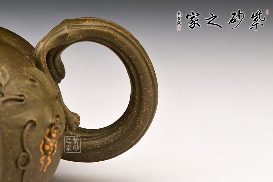 此壺采用珍稀原礦泥料豆青泥制作而成,色澤如銅,古樸厚重,歷史感極強(qiáng),文化底蘊(yùn)濃厚,泥質(zhì)細(xì)膩斑駁,頗有質(zhì)感。